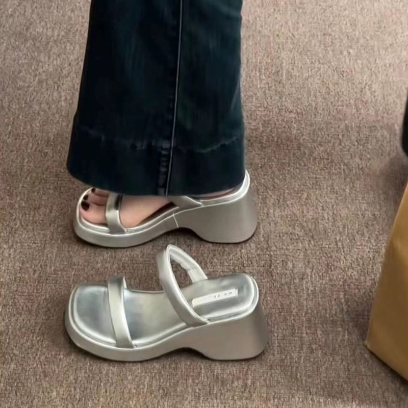 2025年春秋季新款厚底增高一字拖鞋外穿休闲松糕底简约显腿长凉拖