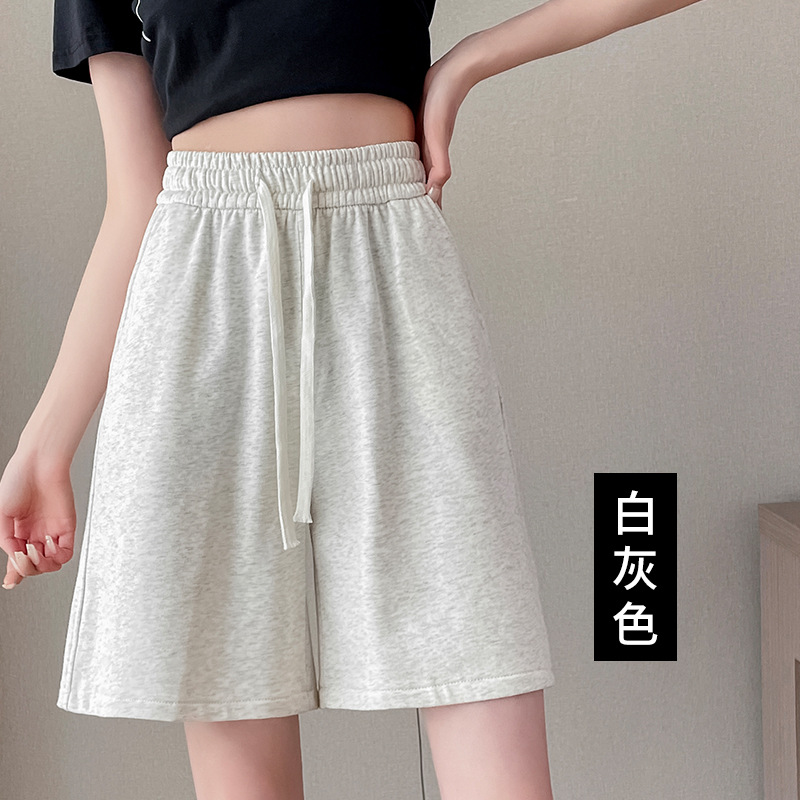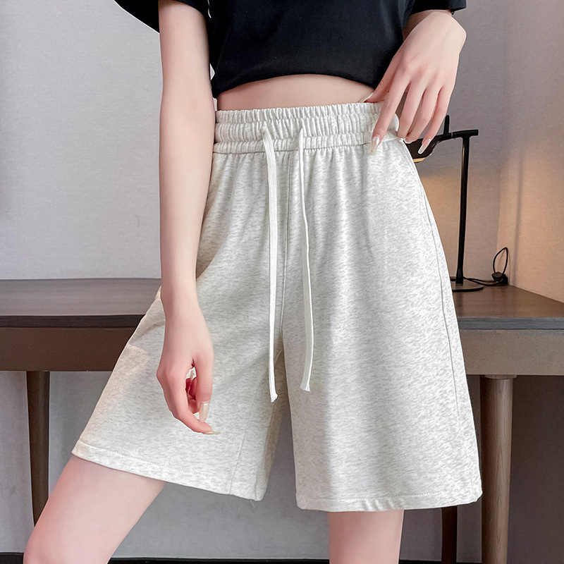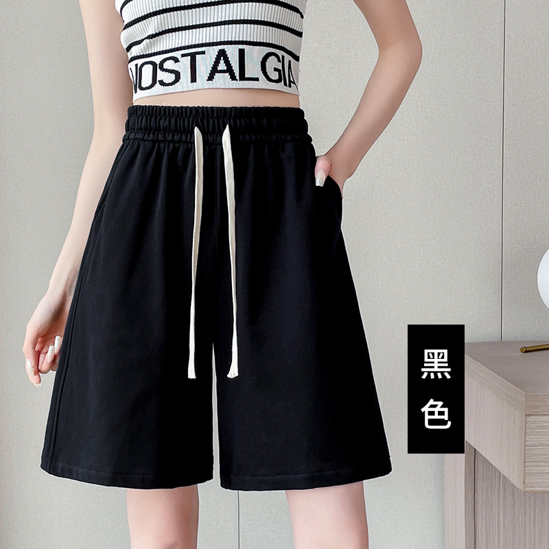 运动短裤女夏季宽松直筒显瘦休闲高腰潮港味阔腿中裤黑色五分裤子