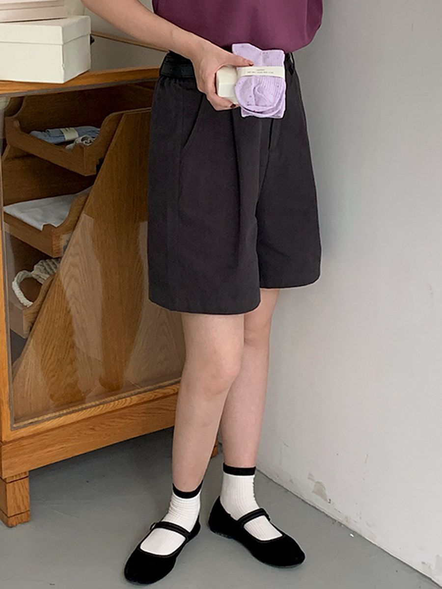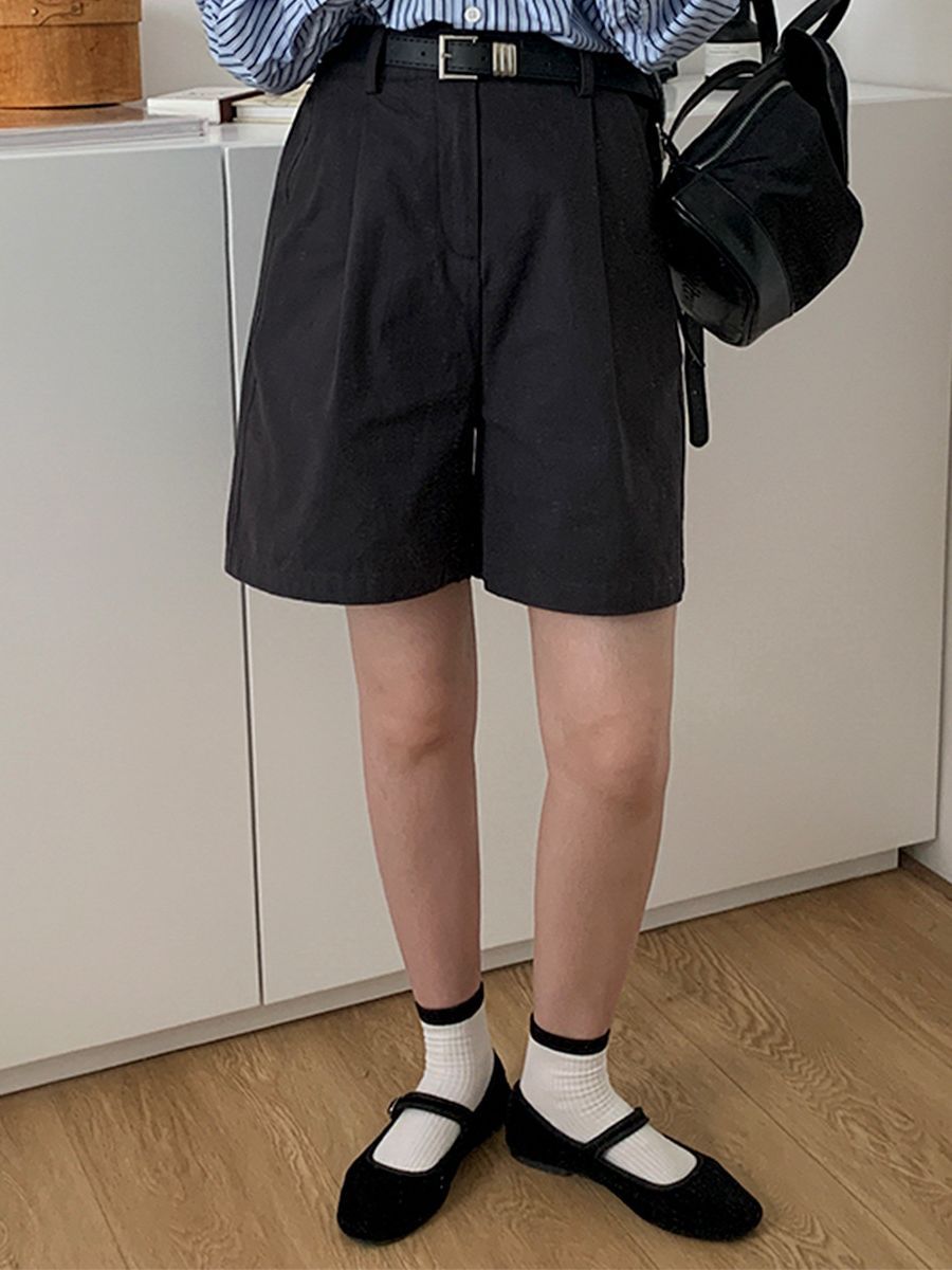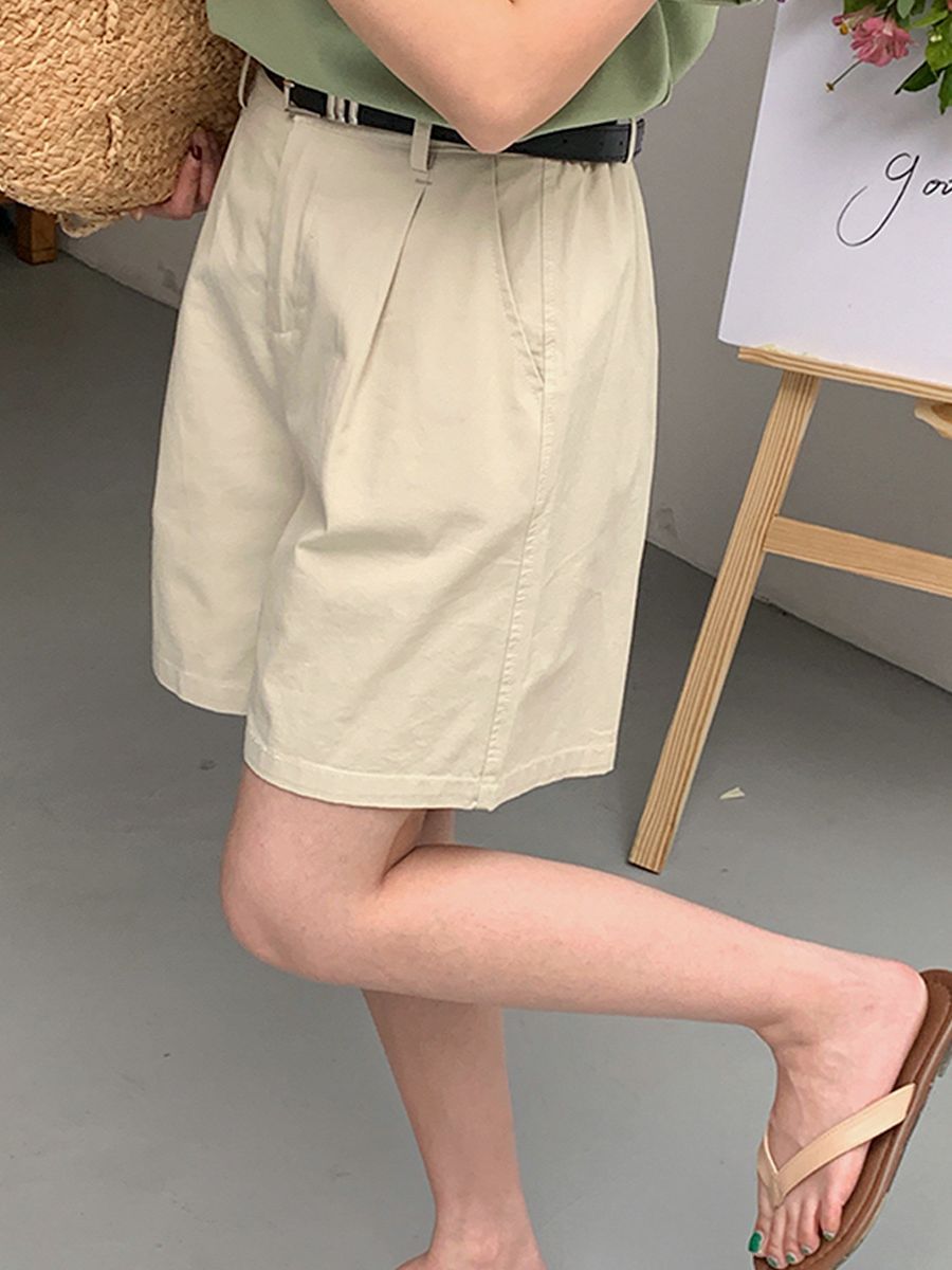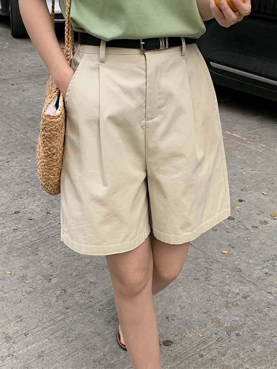 【欧凡】9166简约高腰短裤女夏季新款宽松显瘦百搭阔腿五分裤