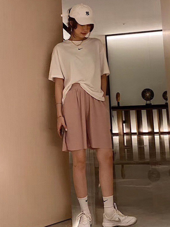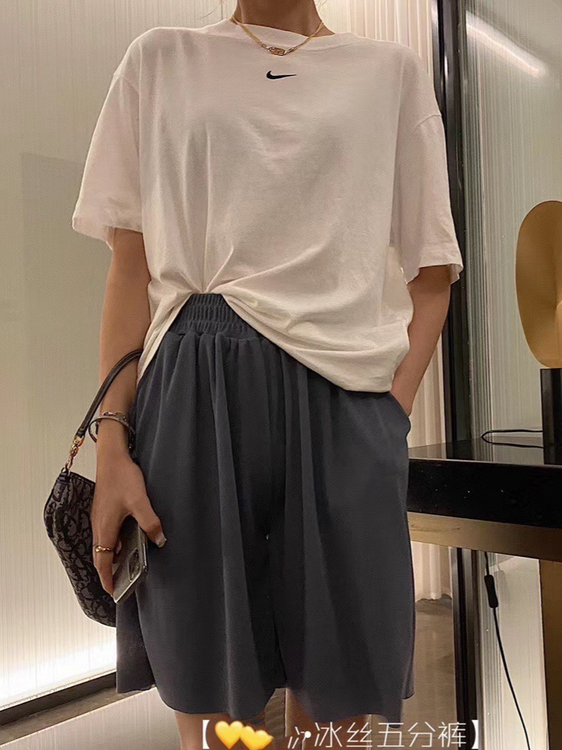 有口袋za家冰丝五分裤休闲垂坠感显瘦阔腿裤女高腰直筒针织裤短裤