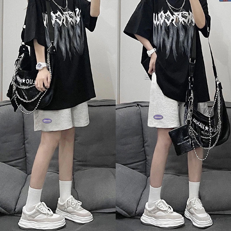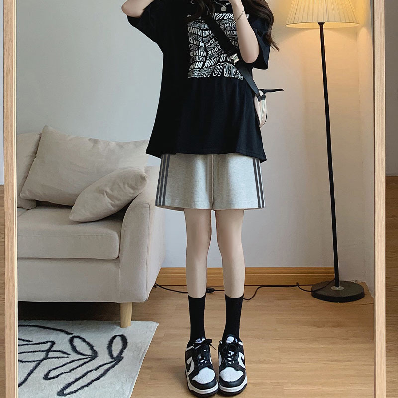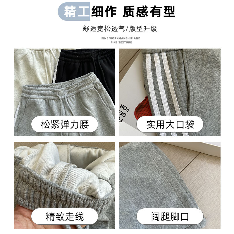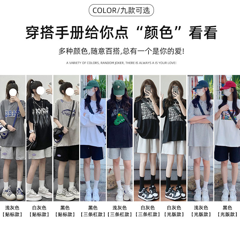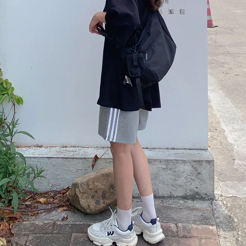 灰色运动短裤女夏季薄款新款学生显瘦宽松直筒休闲阔腿五分裤