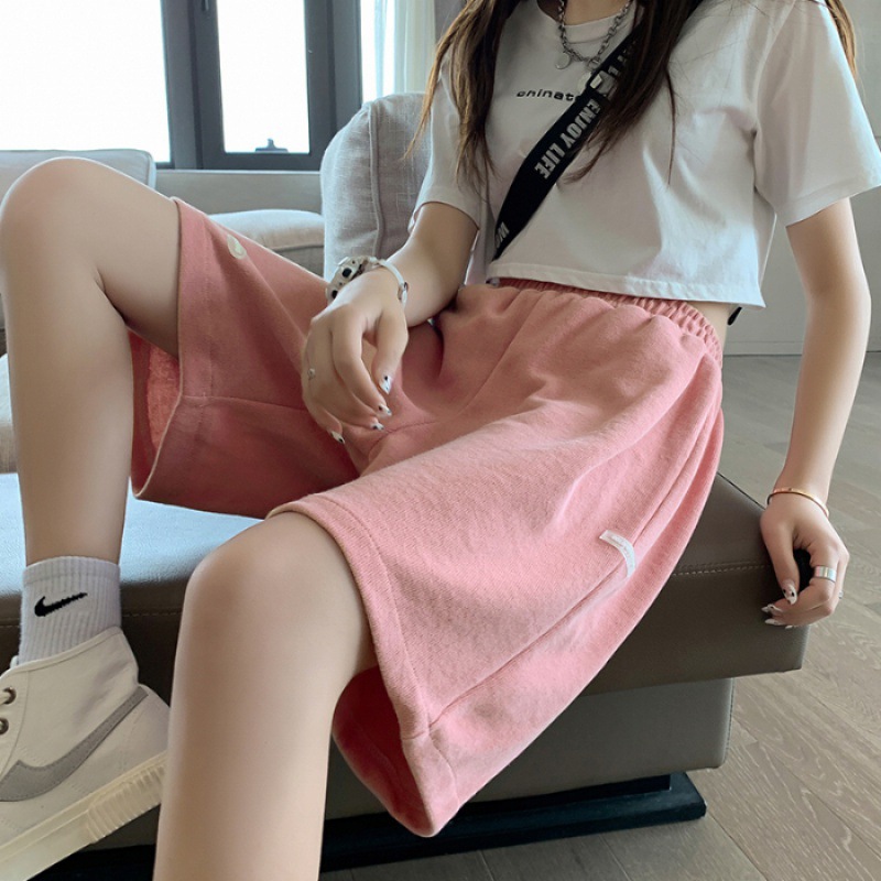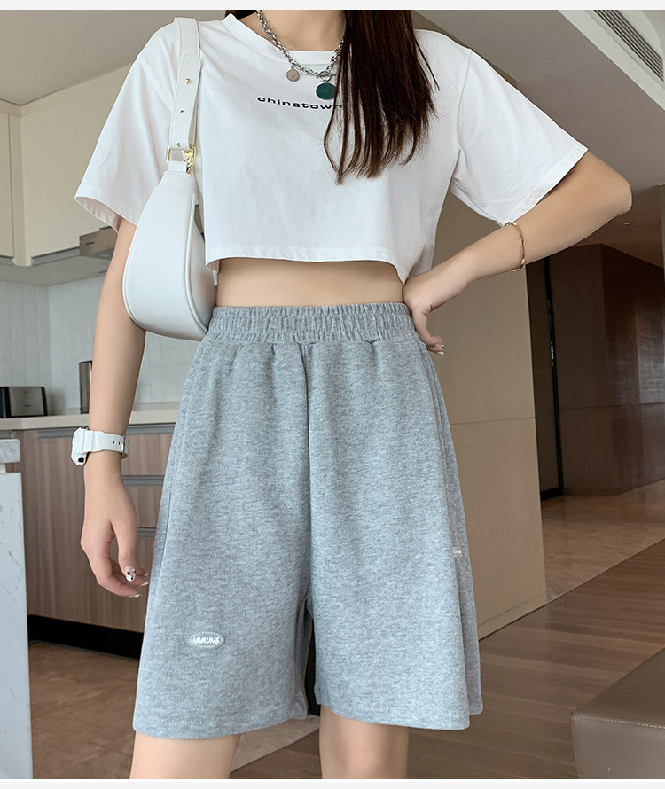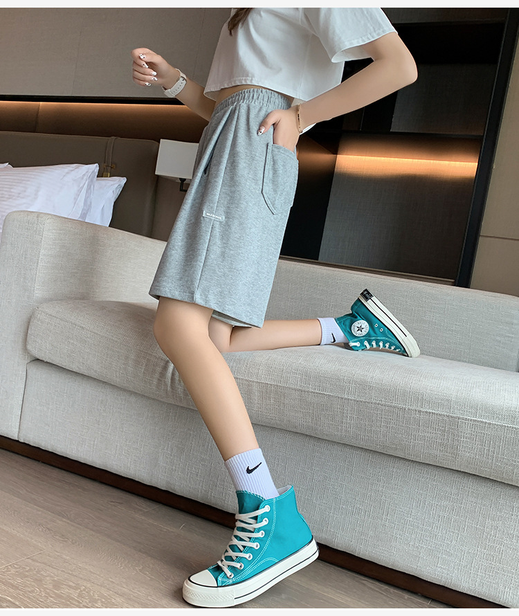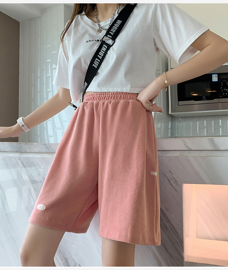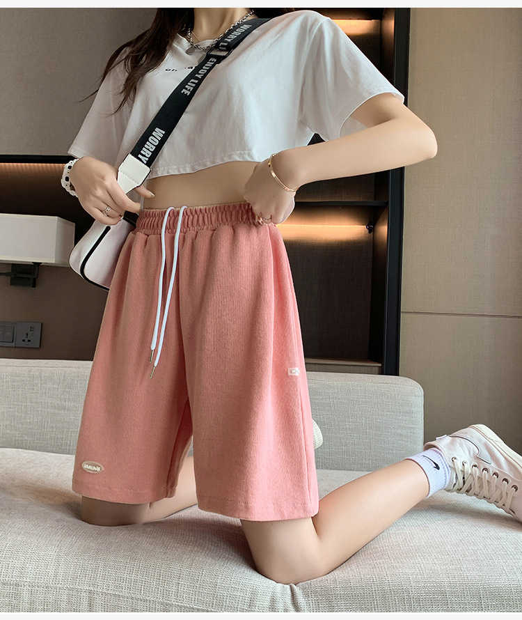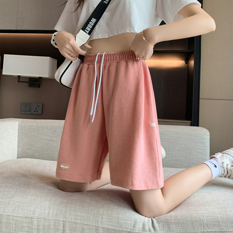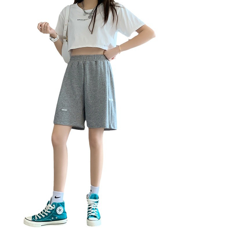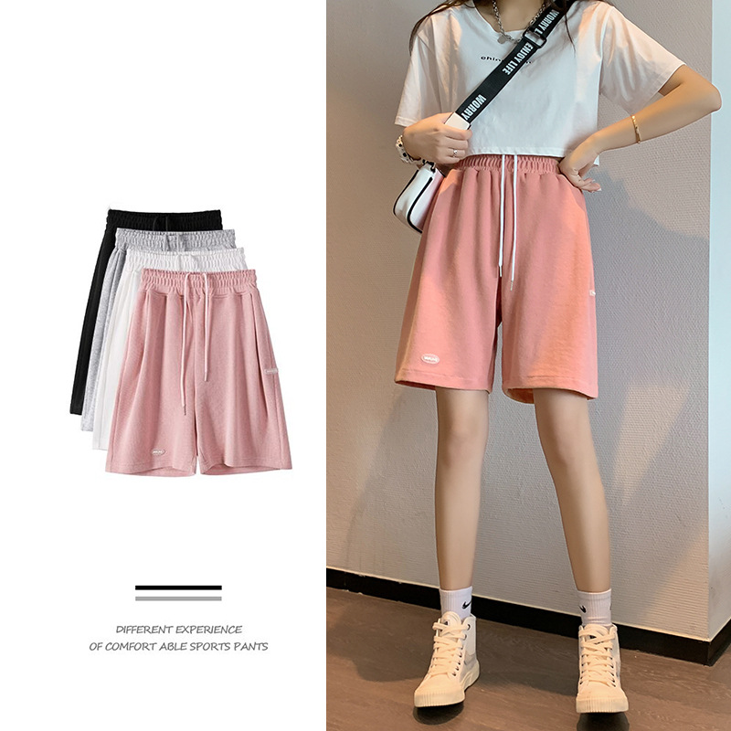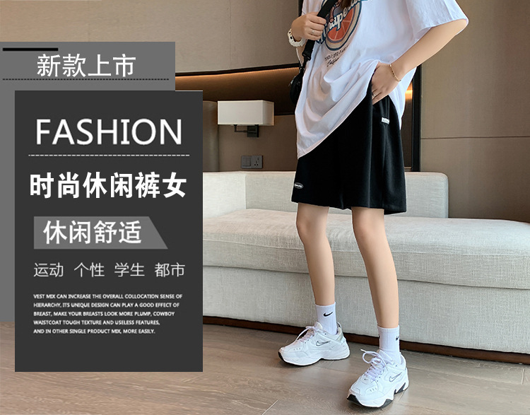 运动短裤女夏季高腰阔腿宽松直筒休闲外穿中学生五分裤子