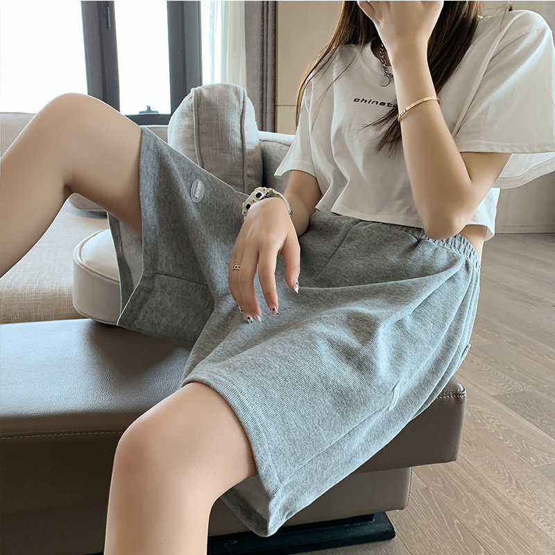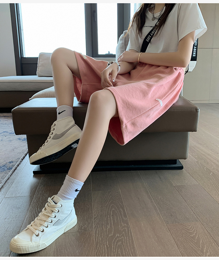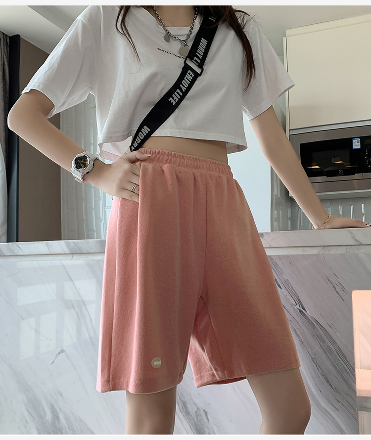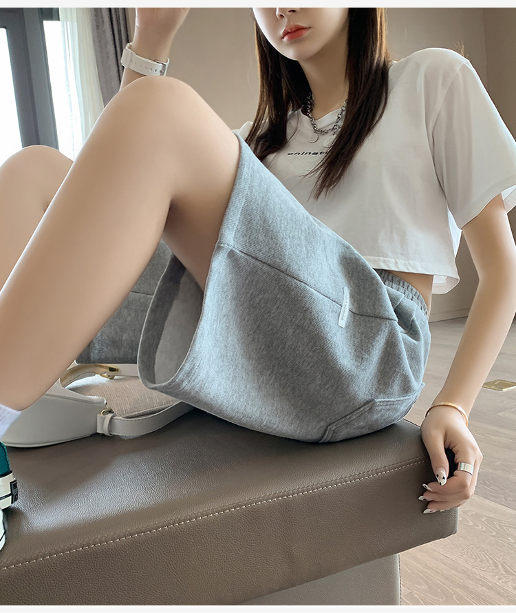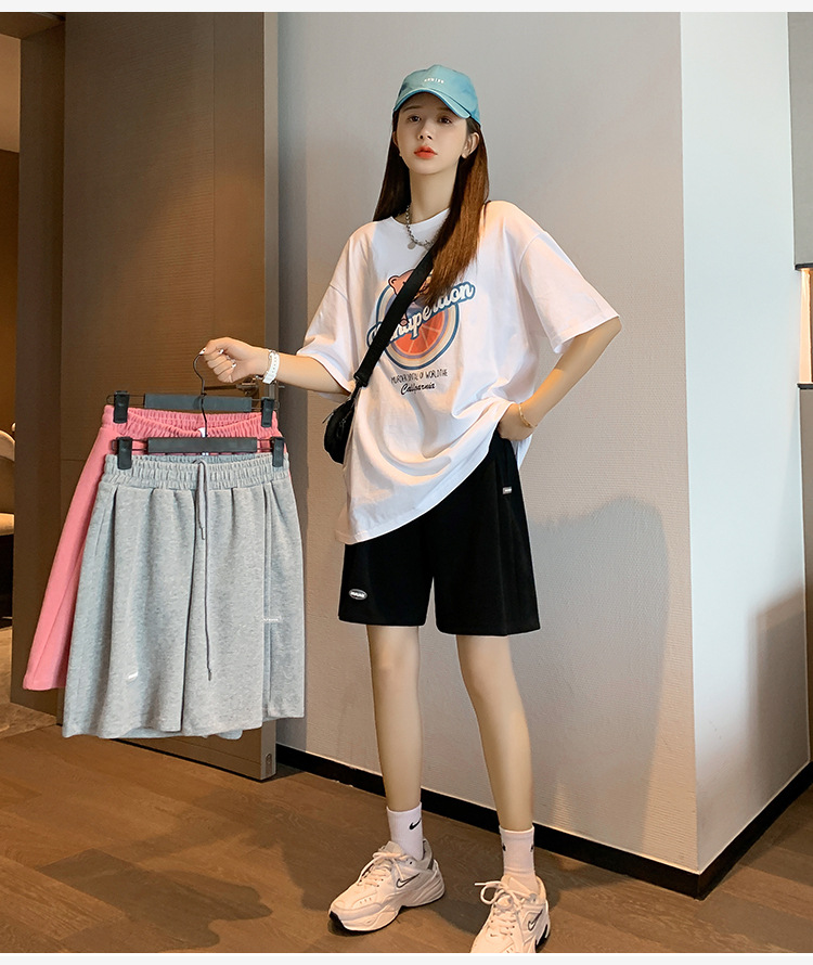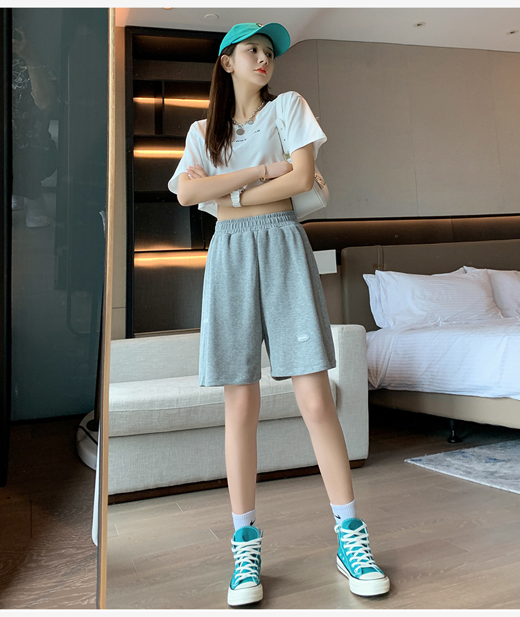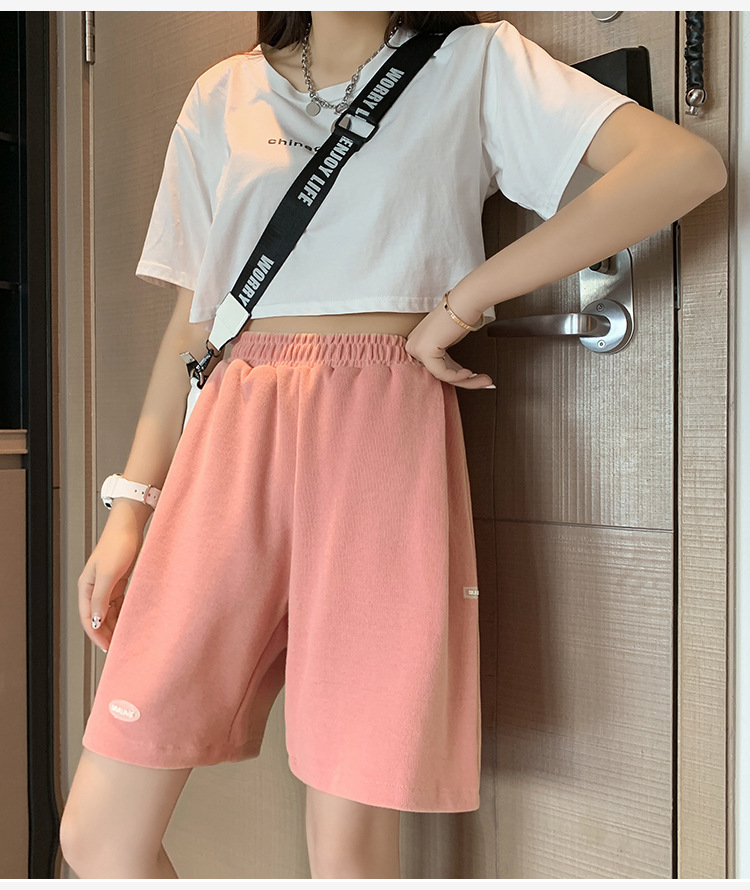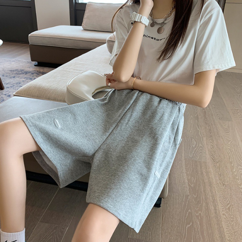运动短裤女夏季高腰阔腿宽松直筒休闲外穿中学生五分裤子