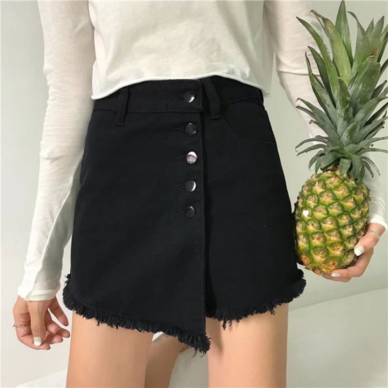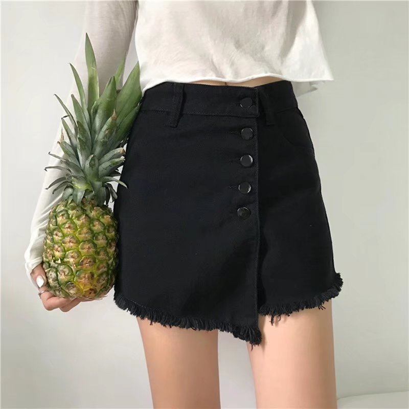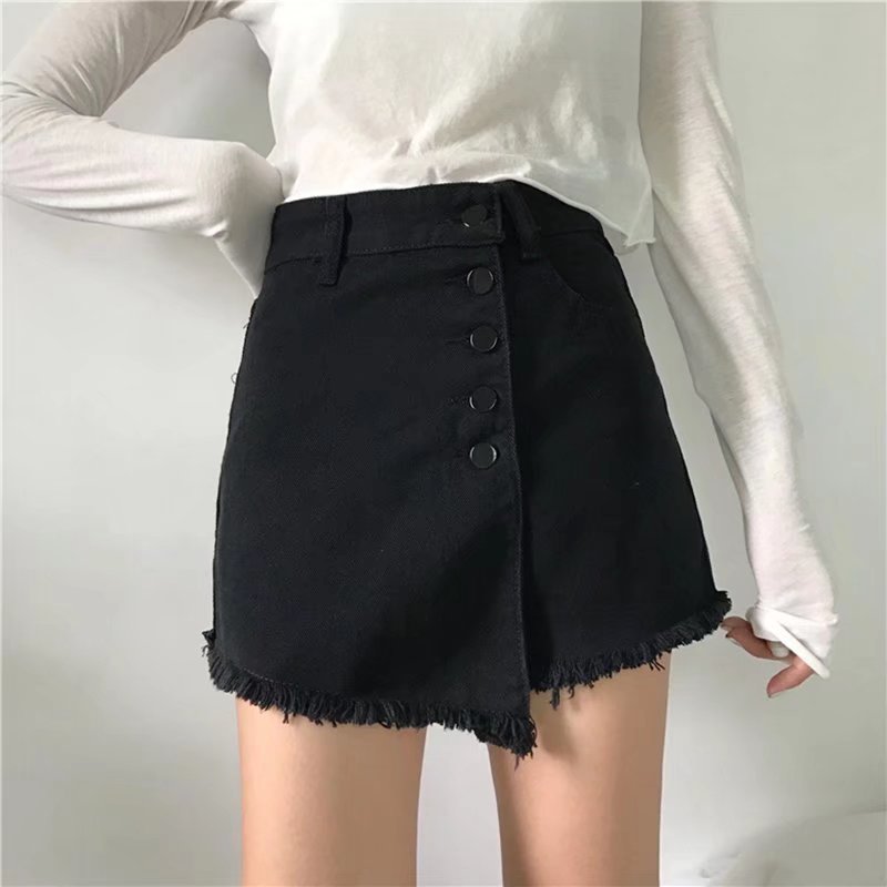 港味复古高腰牛仔短裤女夏大码学生宽松显瘦百搭阔腿字热裤裙