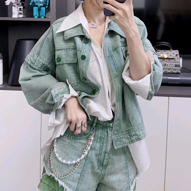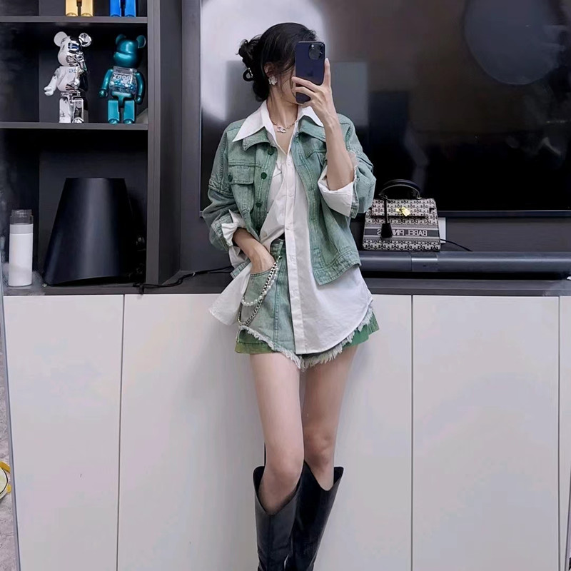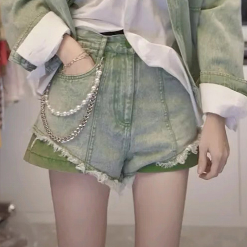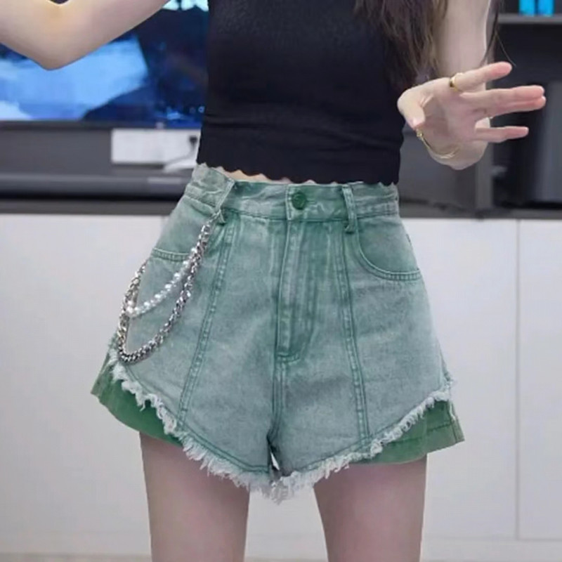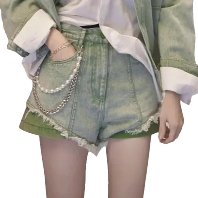 大码女装年新款高腰复古牛仔短裤胖妹妹宽松百搭阔腿毛边热裤
