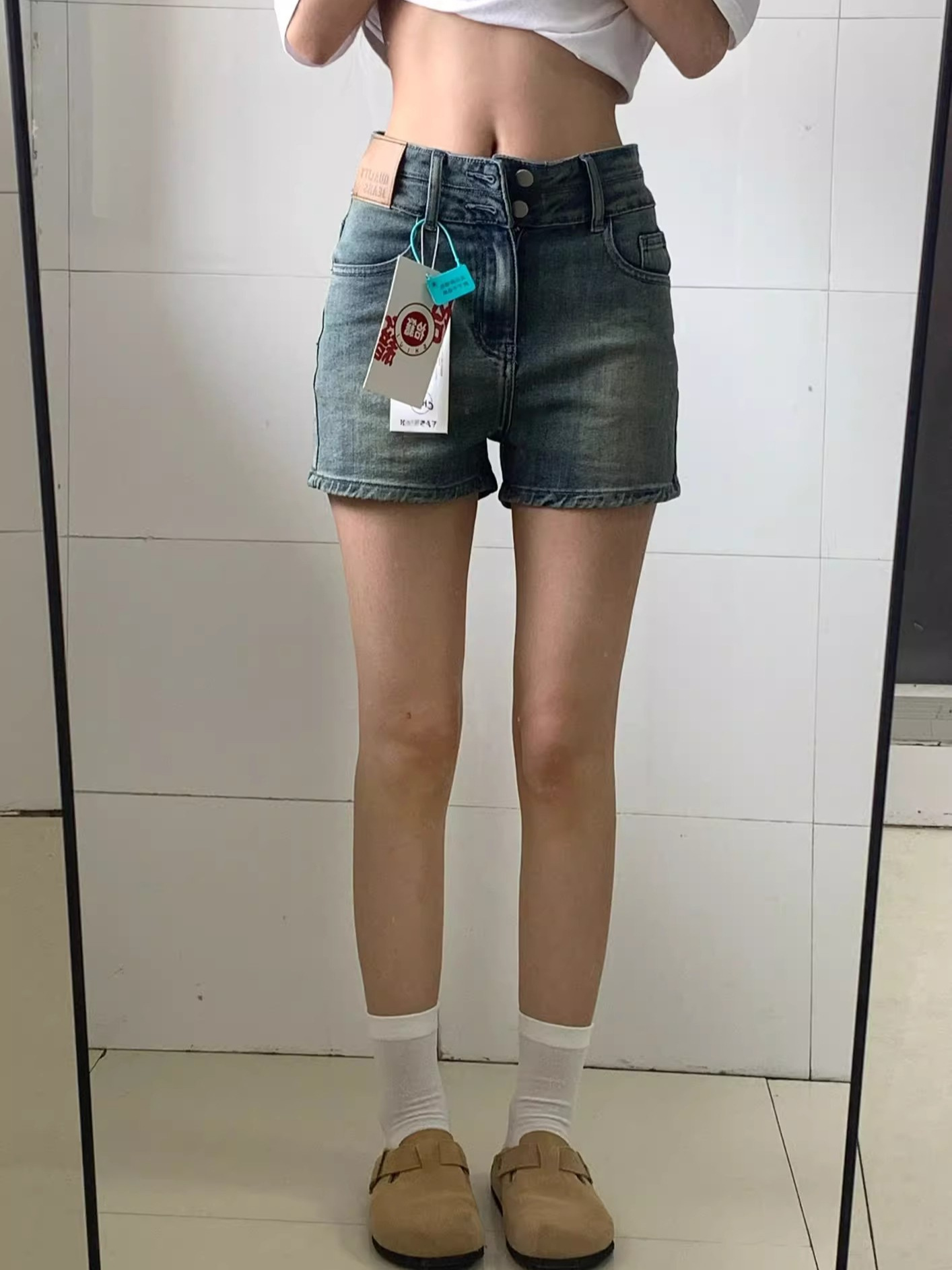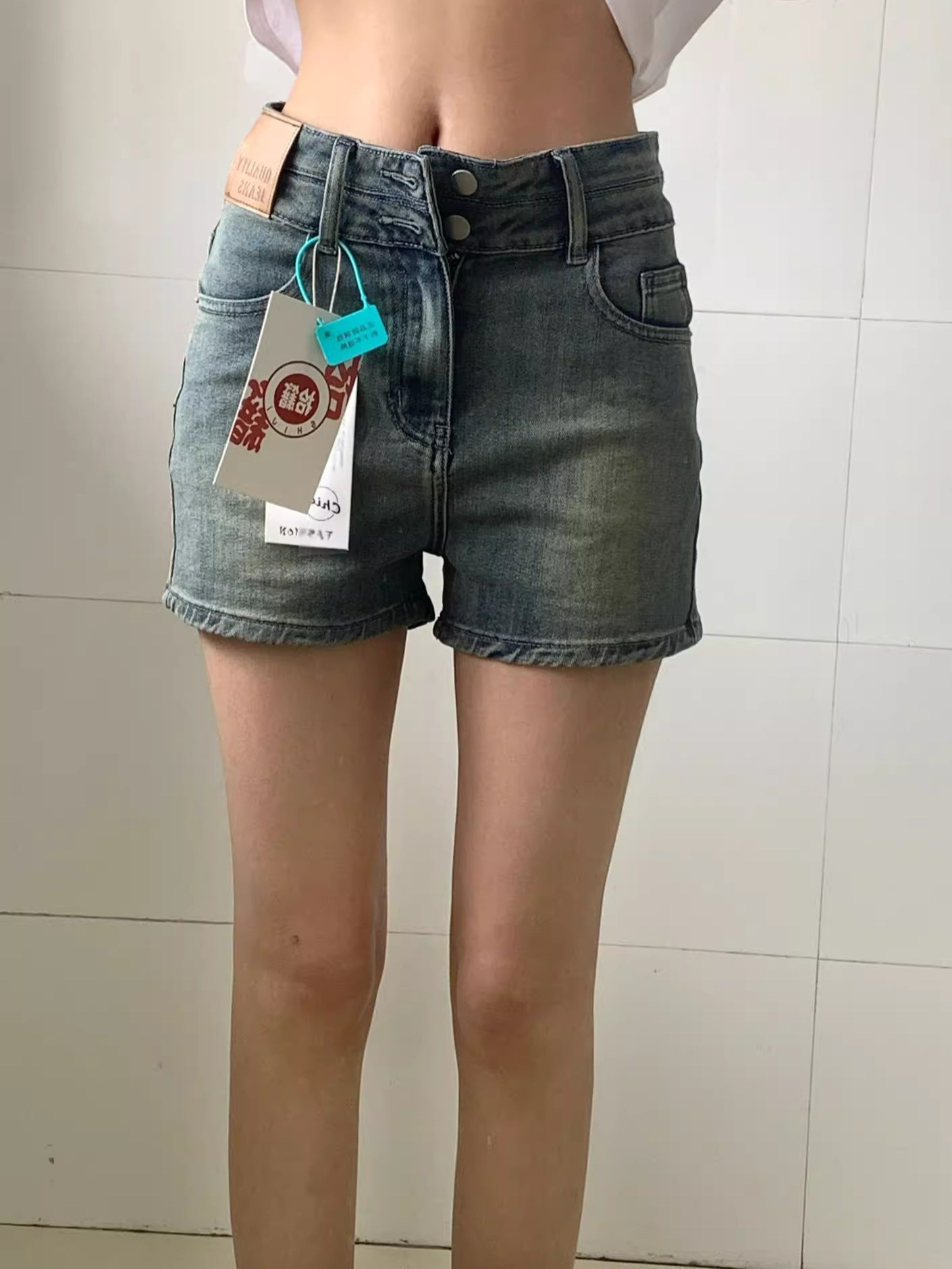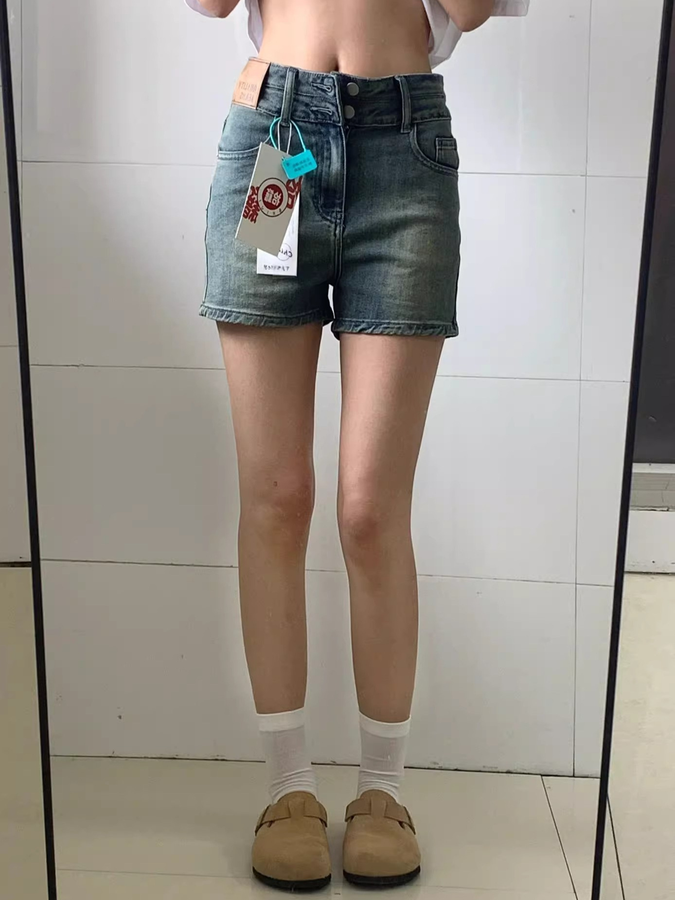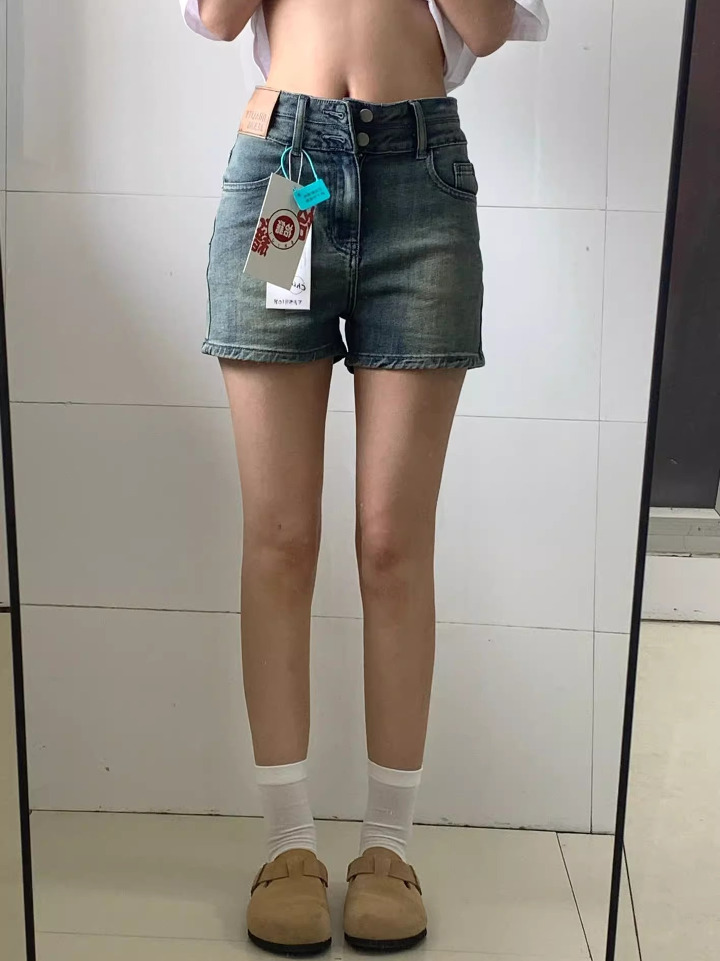 大码美式复古牛仔短裤女夏季高腰胖mm显瘦设计感宽松休闲直筒裤子