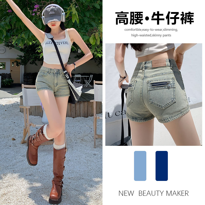 牛仔短裤女夏年新款薄款辣妹时髦时尚显瘦弹力高街设计感裤子