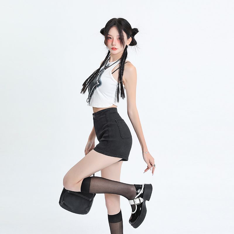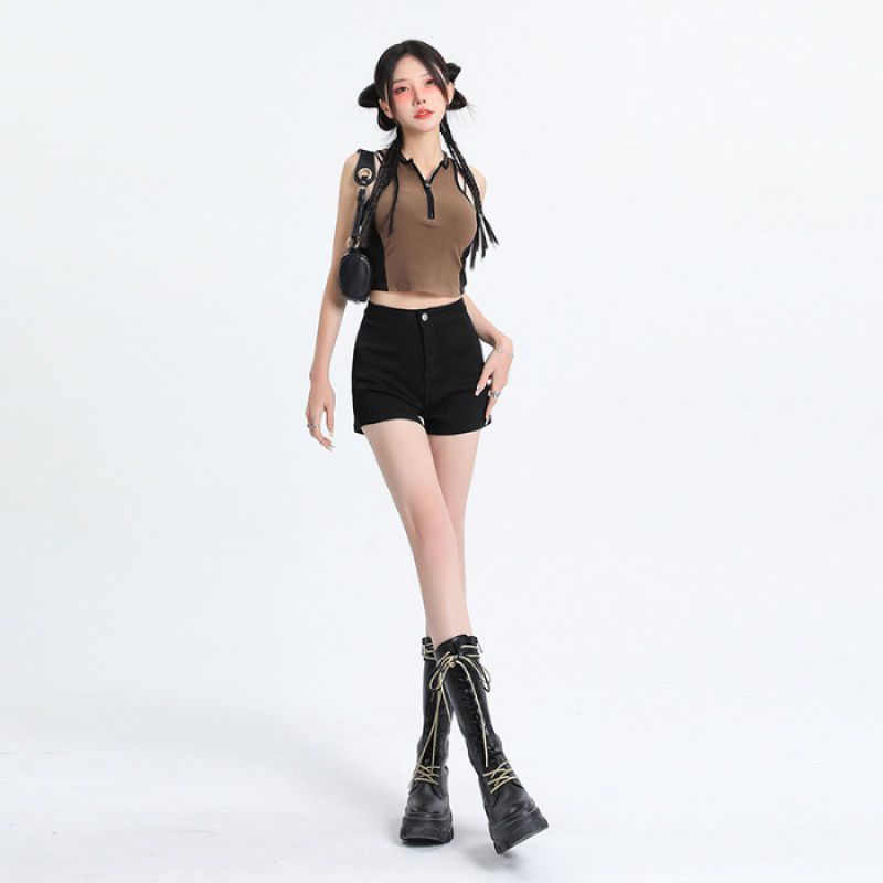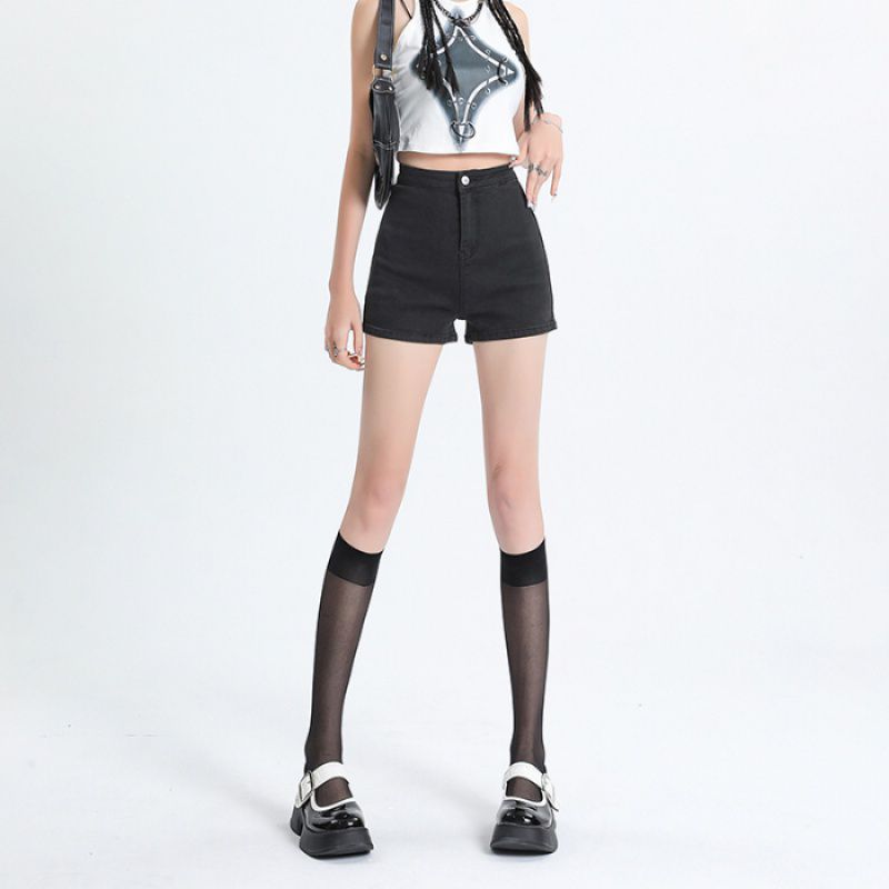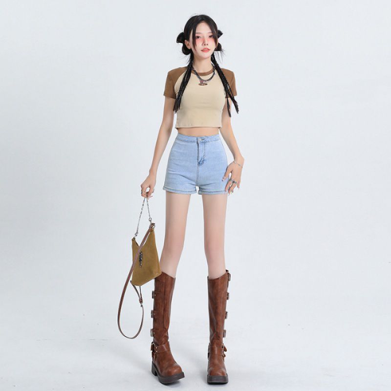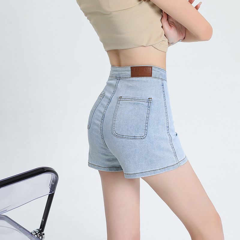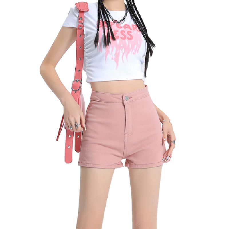 高腰紧身牛仔短裤女紧身包臀字热裤新拉链夏季甜辣风