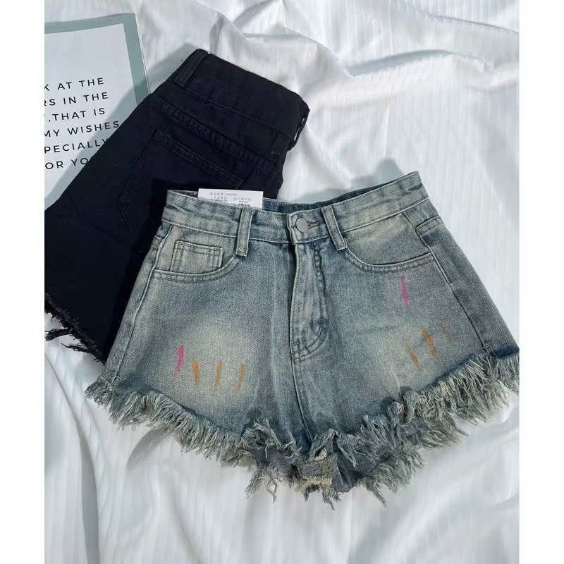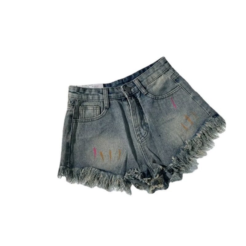 复古辣妹毛边涂鸦牛仔短裤女夏季新款小众潮牌休闲显瘦A字裤