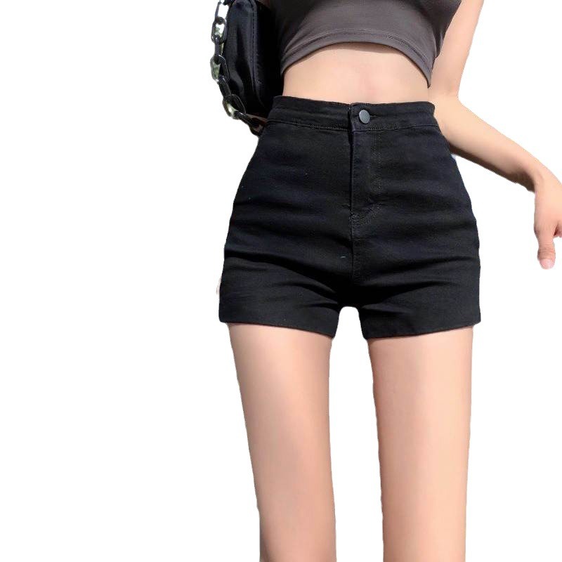 韩版高腰黑色热裤夏季修身设计感牛仔短裤性感ins潮短裤外贸