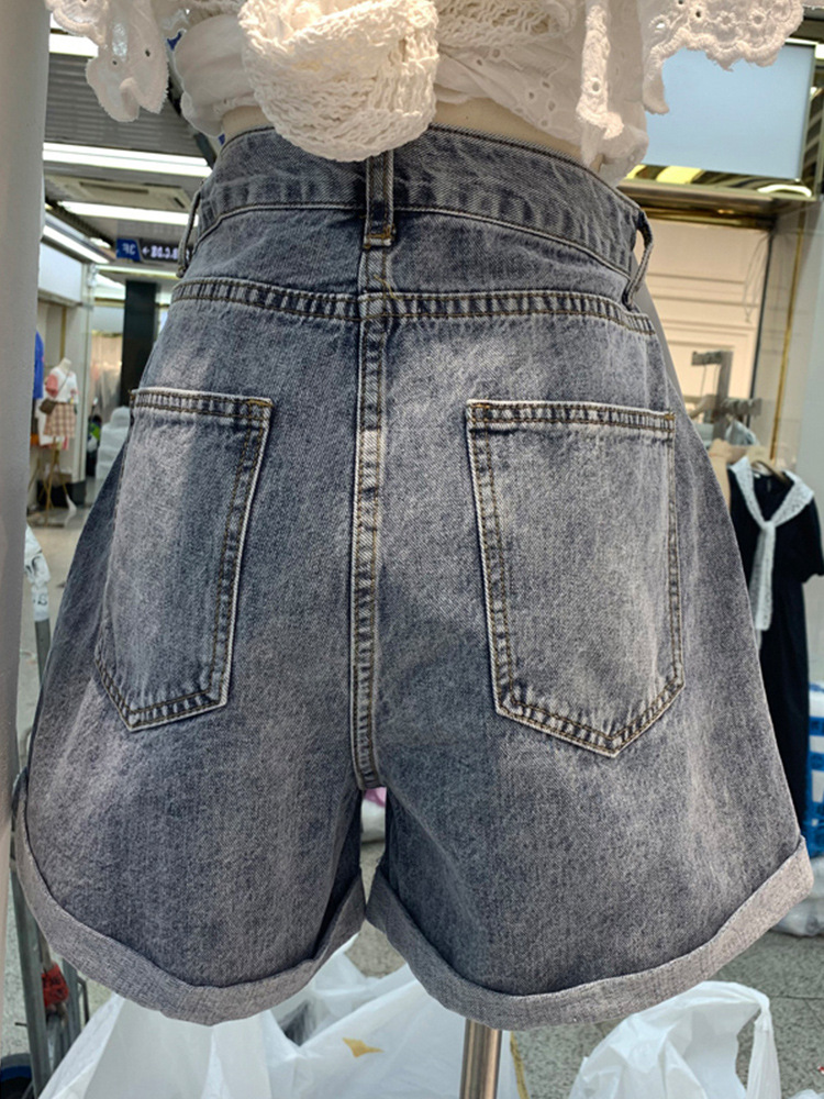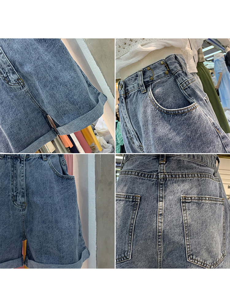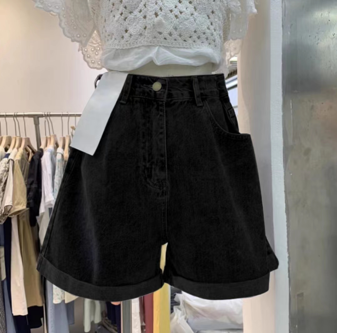 梨形身材高腰牛仔短裤女夏季大码胖mm胯大腿粗宽松a字卷边阔腿裤