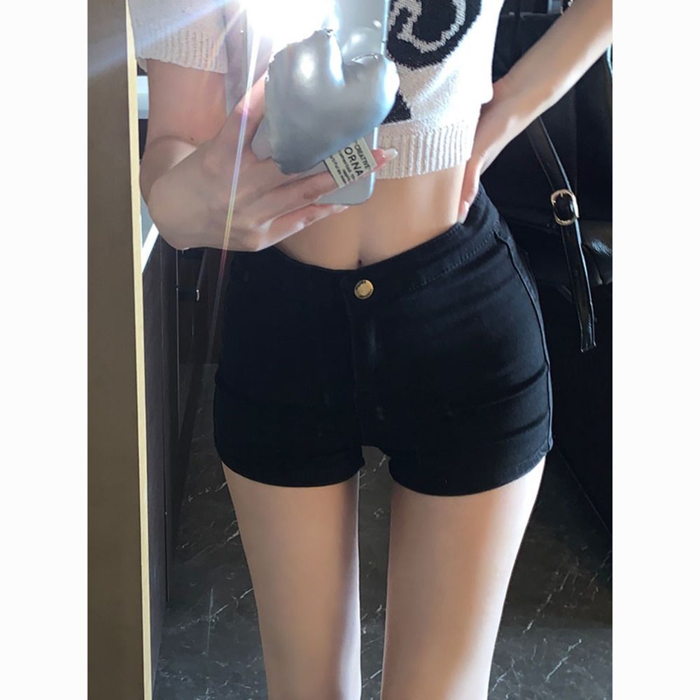 辣妹牛仔短裤女ins春季新款高腰显瘦黑裤子紧身弹力包臀热裤