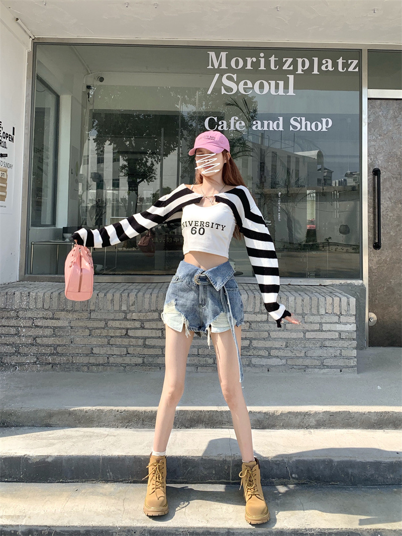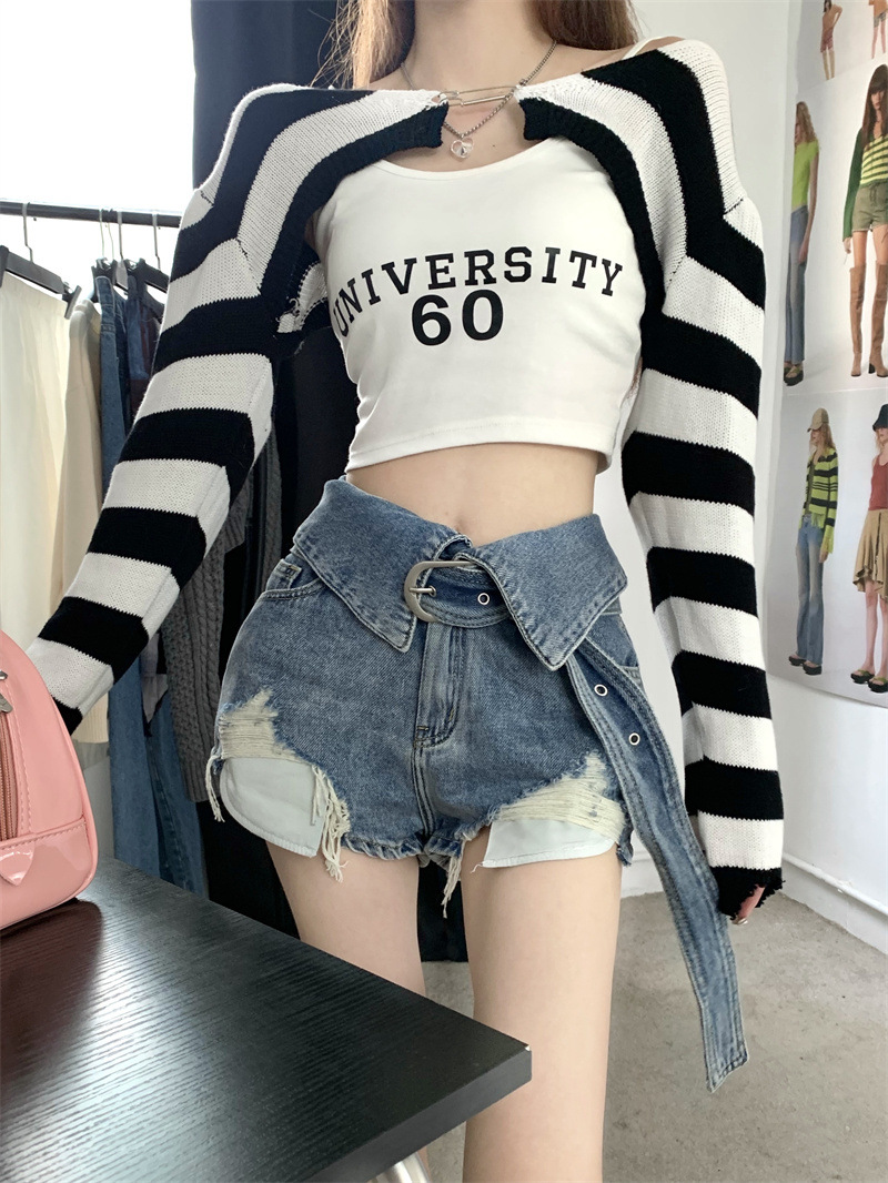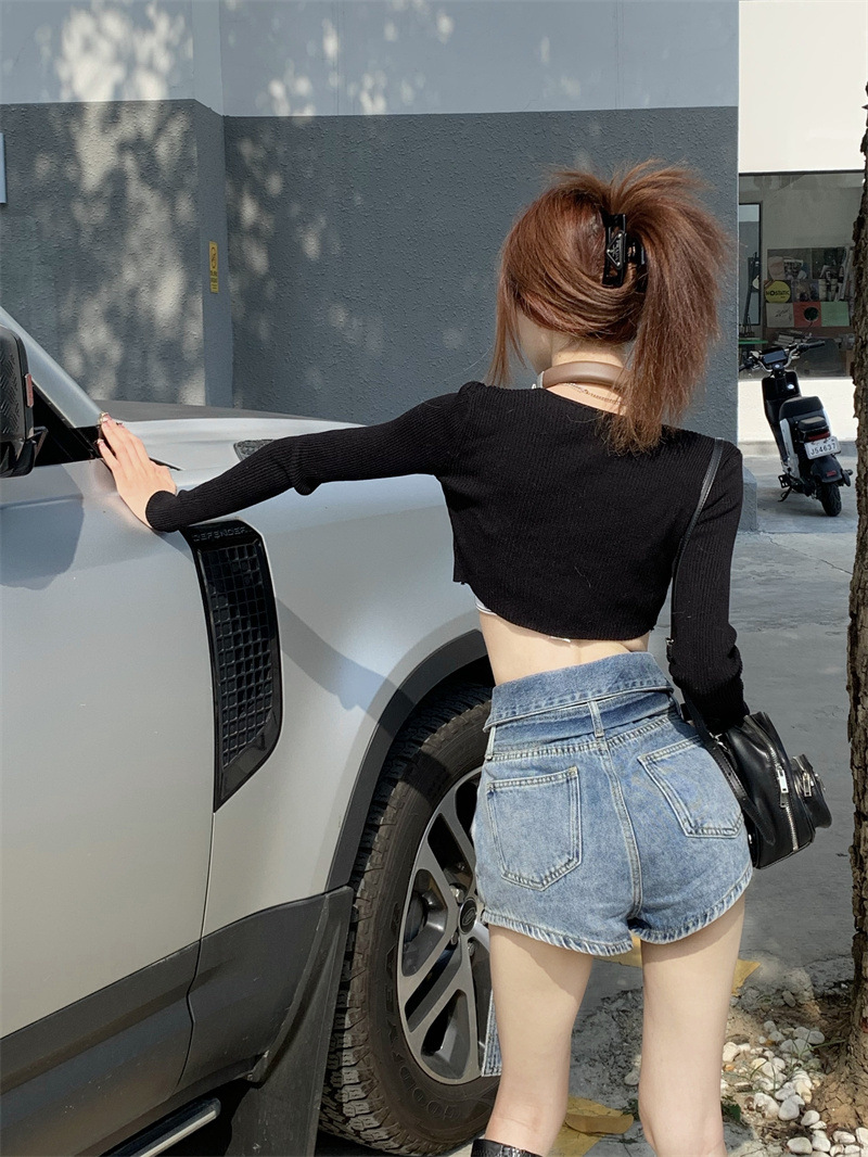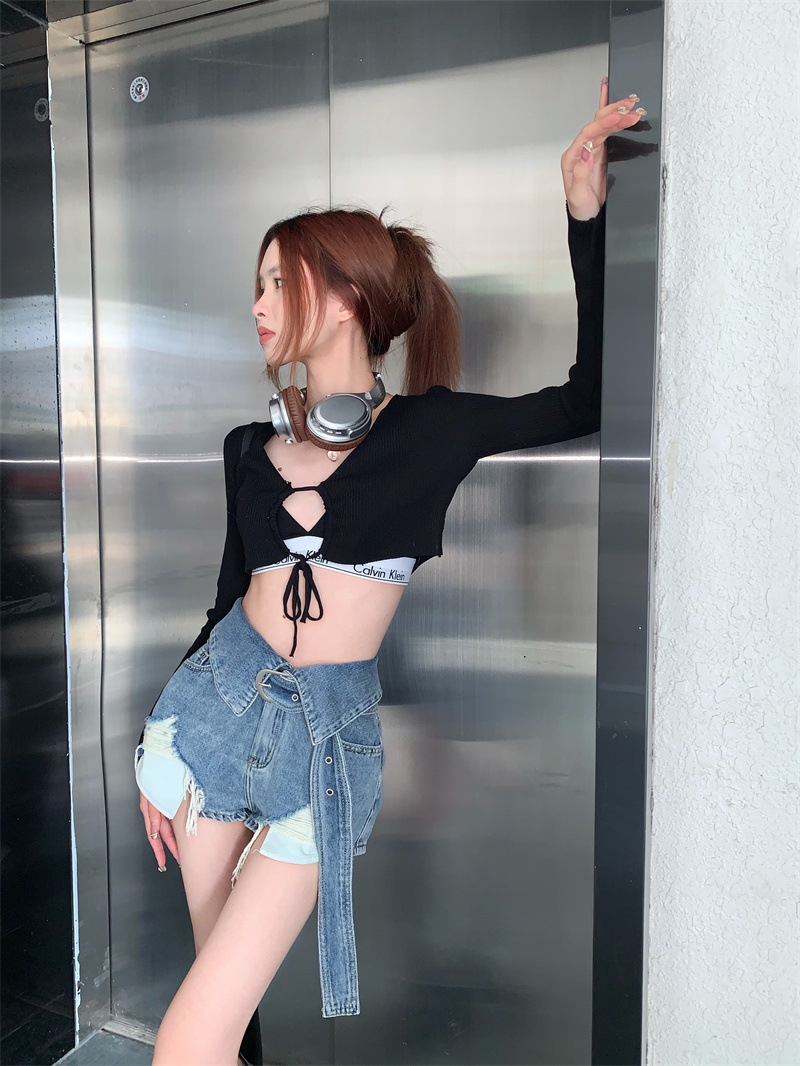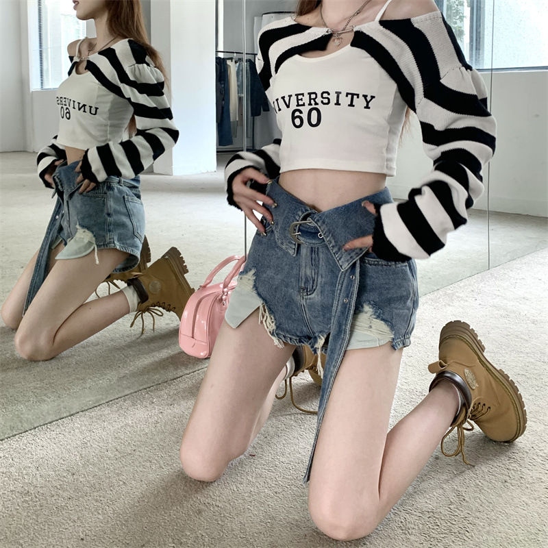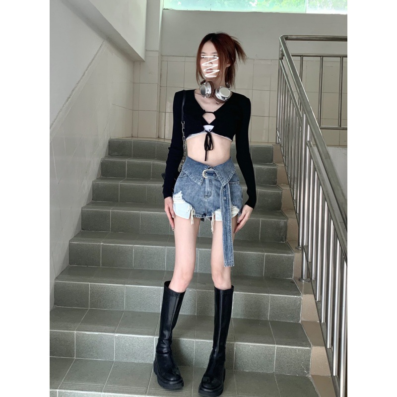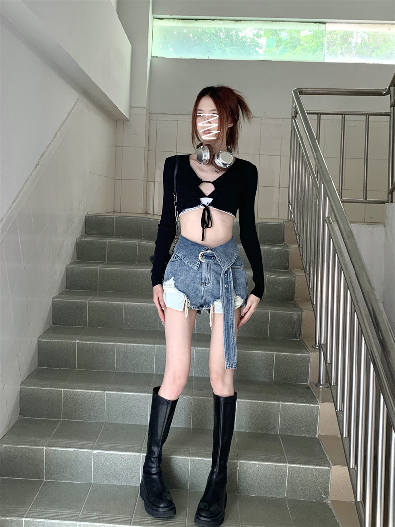 辣妹复古破洞牛仔裤女春季ins潮短裤高腰显瘦设计感小众阔腿裤子