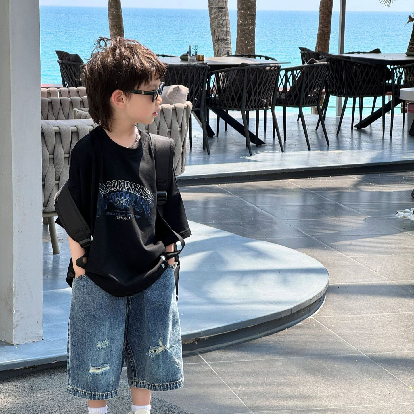 泰如夏季新款韩版男童休闲字母洋气百搭短袖T恤儿童上衣潮