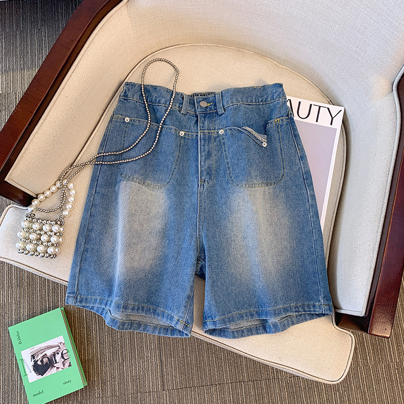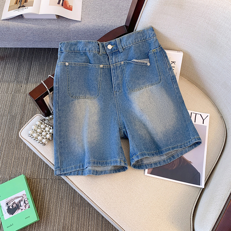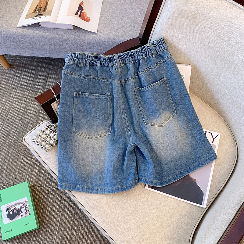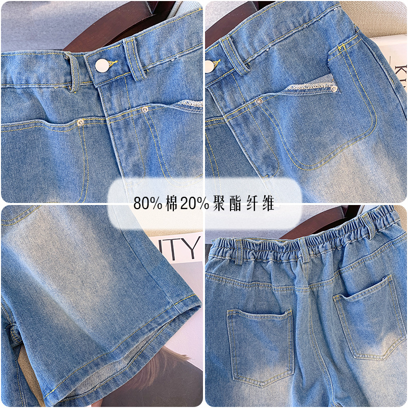变形策 大码女装胖mm牛仔短裤女夏季高腰a字阔腿裤休闲宽松