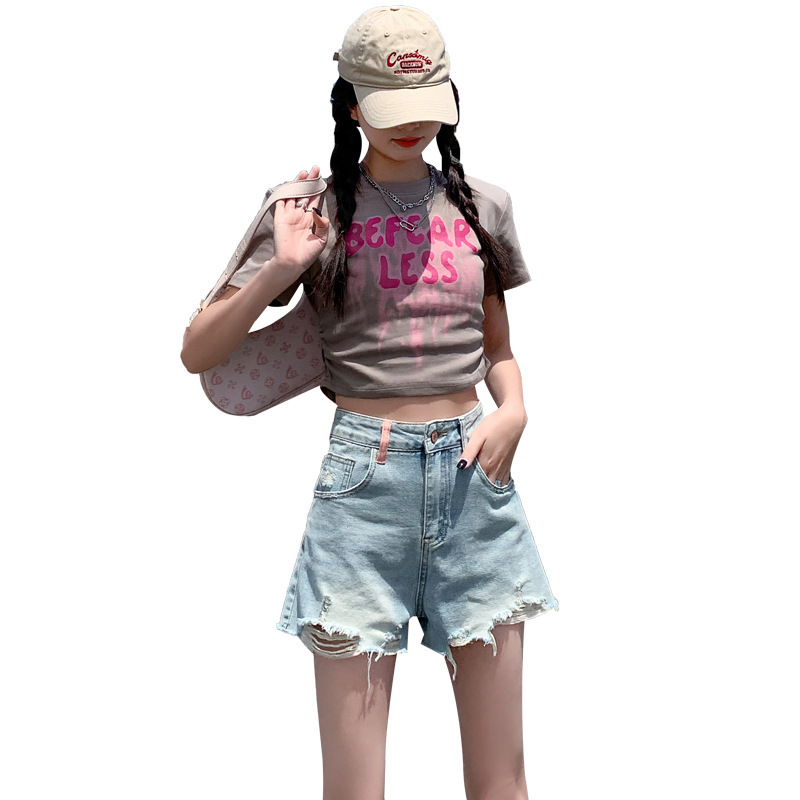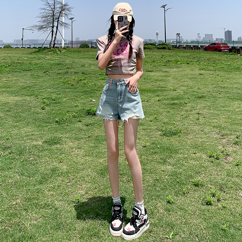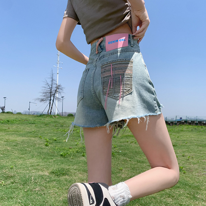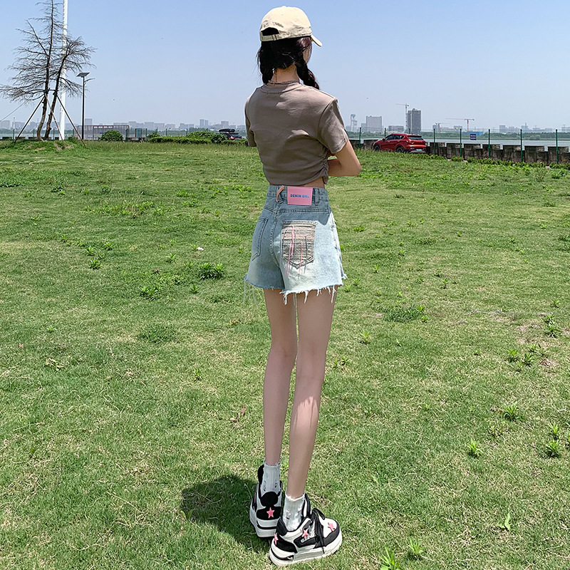 破洞牛仔短裤女春夏新款宽松韩版高腰A字显瘦百搭短裤