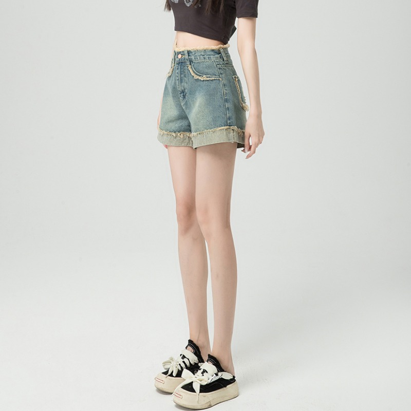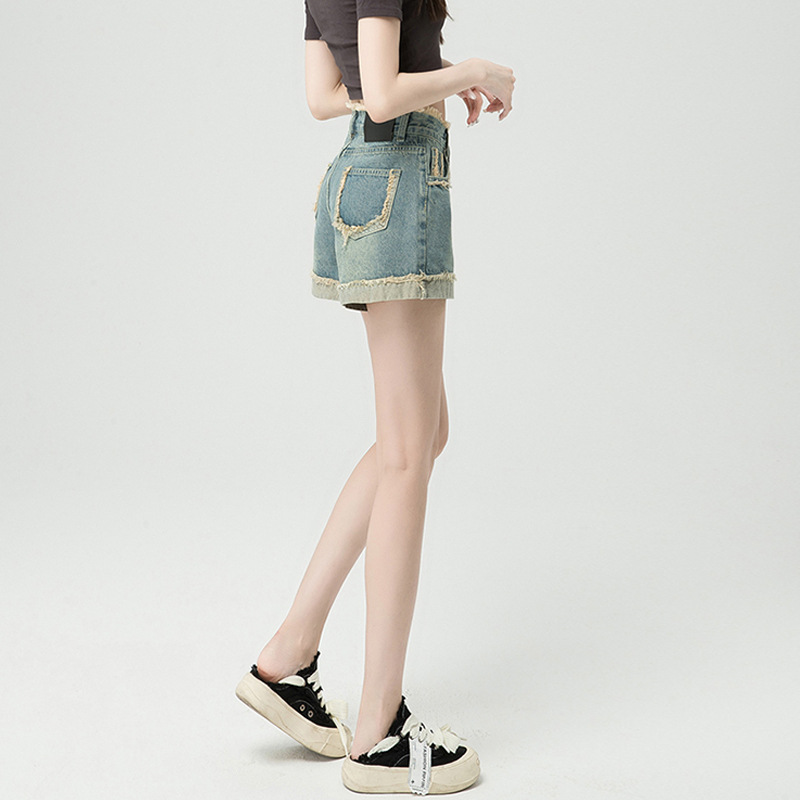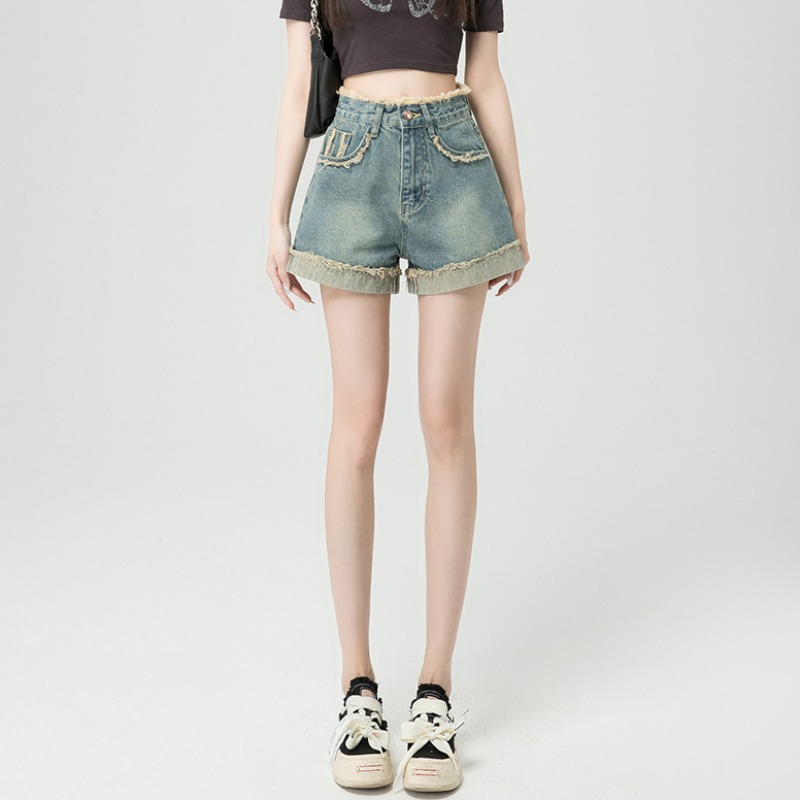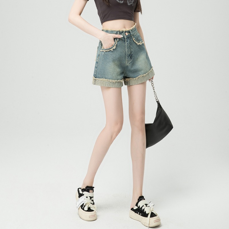 高腰复古牛仔短裙女夏季薄款年新款宽松阔腿显瘦a字辣妹热裤