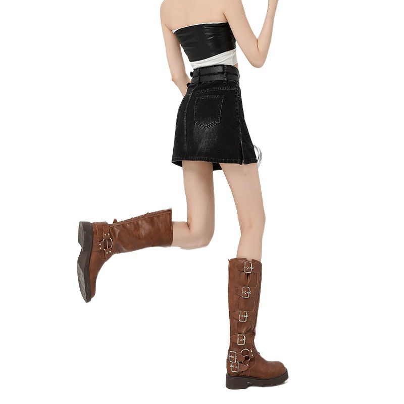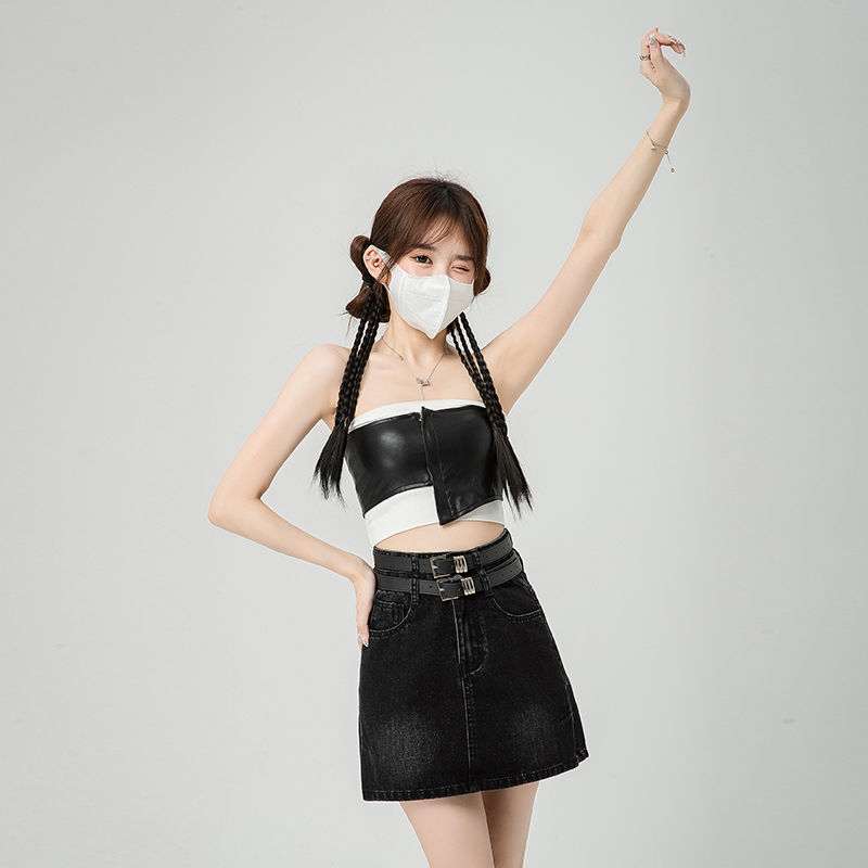 黑色双扣牛仔短裙女年夏季新款美式辣妹A字包臀半身裙子短款