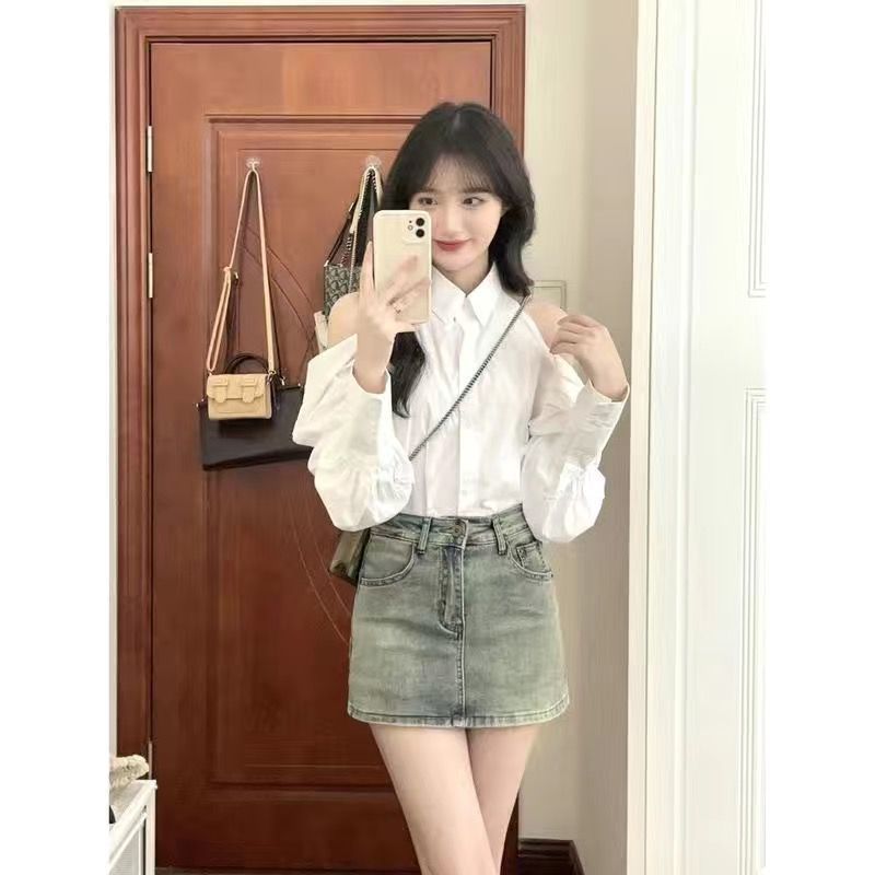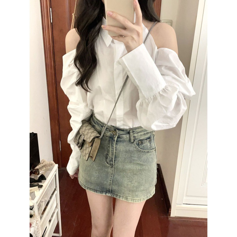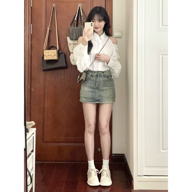 复古牛仔半身裙女新款裙子半裙高腰紧身小个子防走光A字包臀短裙