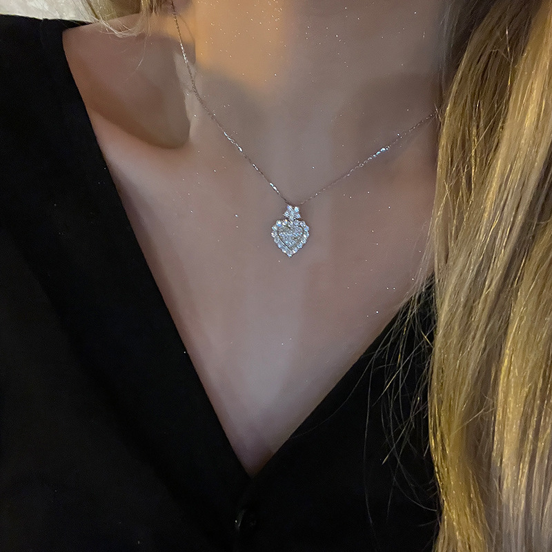925纯银镶钻爱心项链轻奢高级感锁骨链气质甜美520礼物送女友颈链
