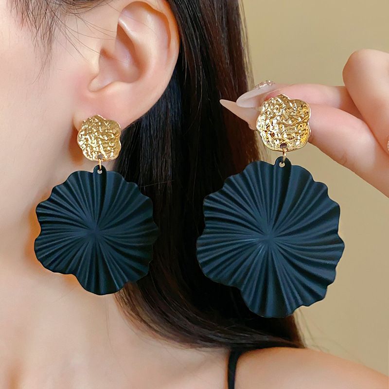 银针黑色薄荷叶耳环新款欧美跨境耳钉气质高级感耳饰女