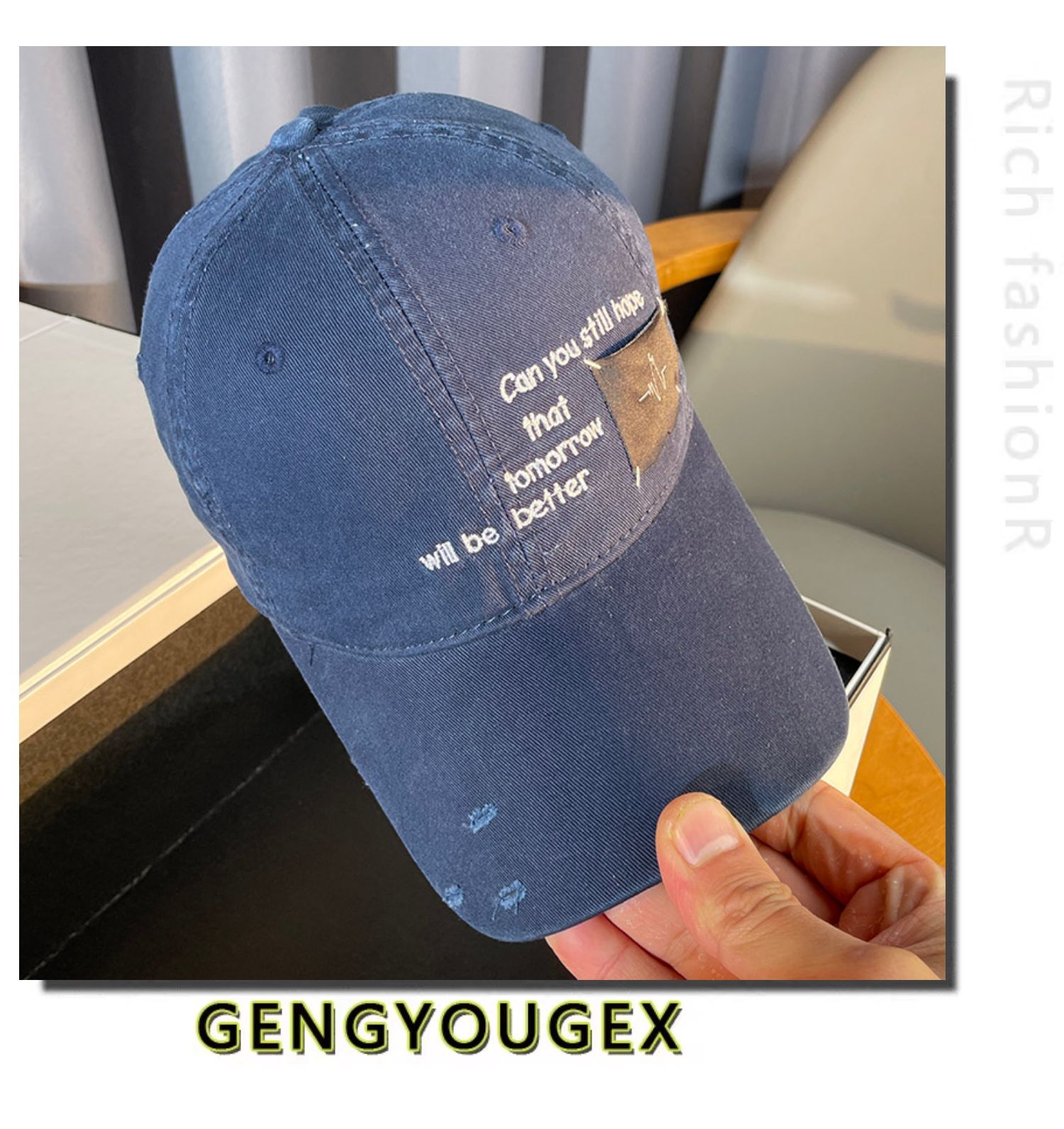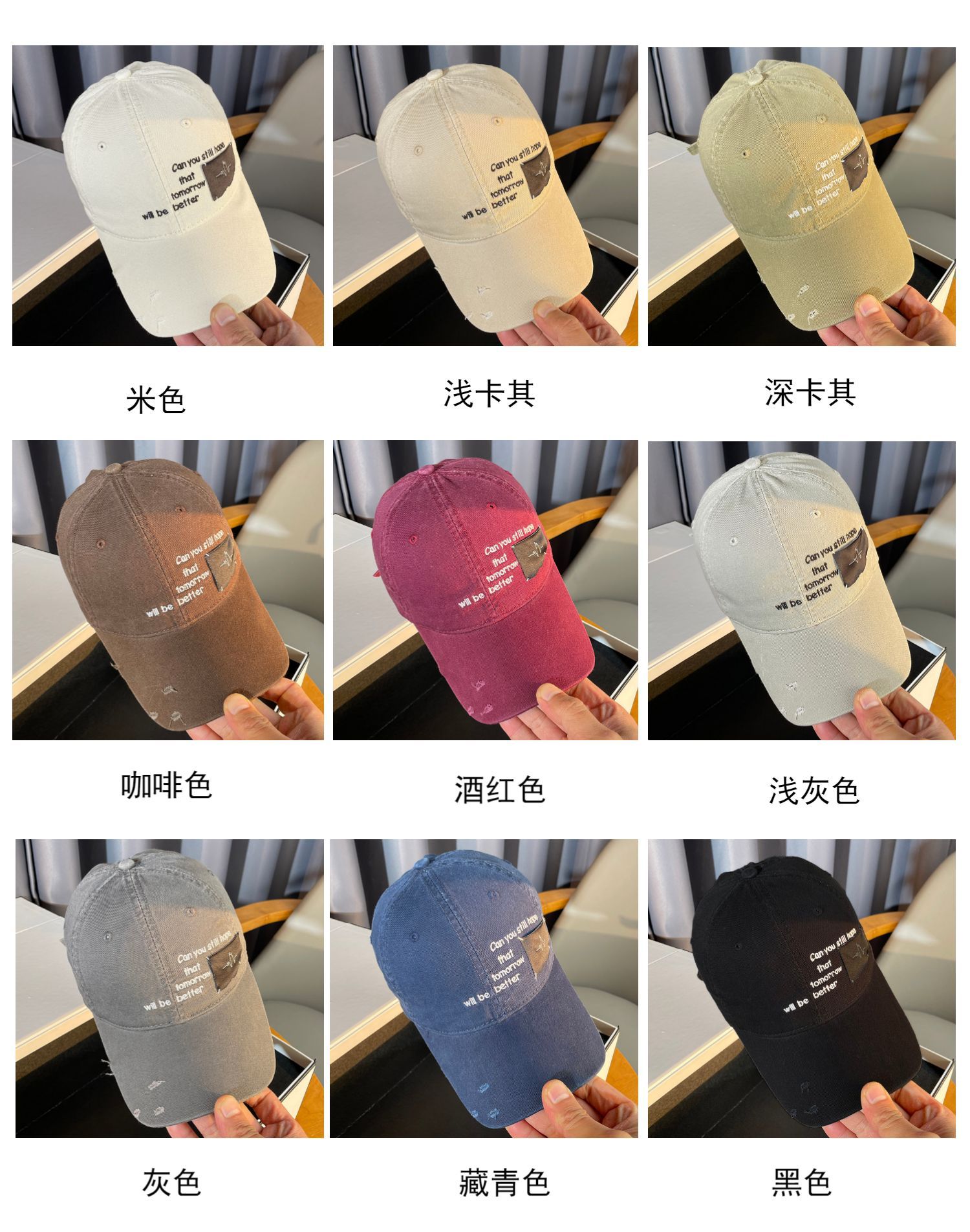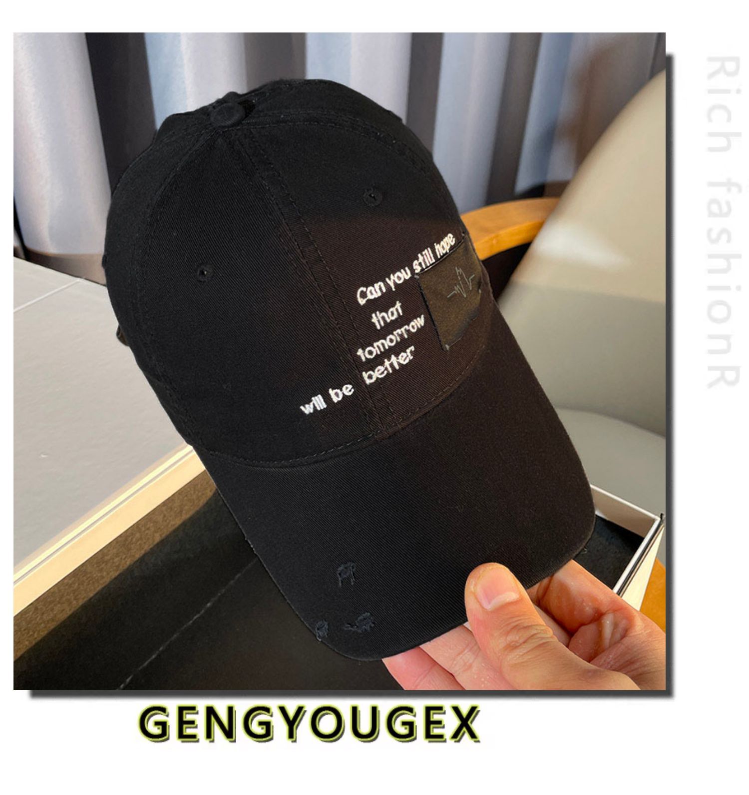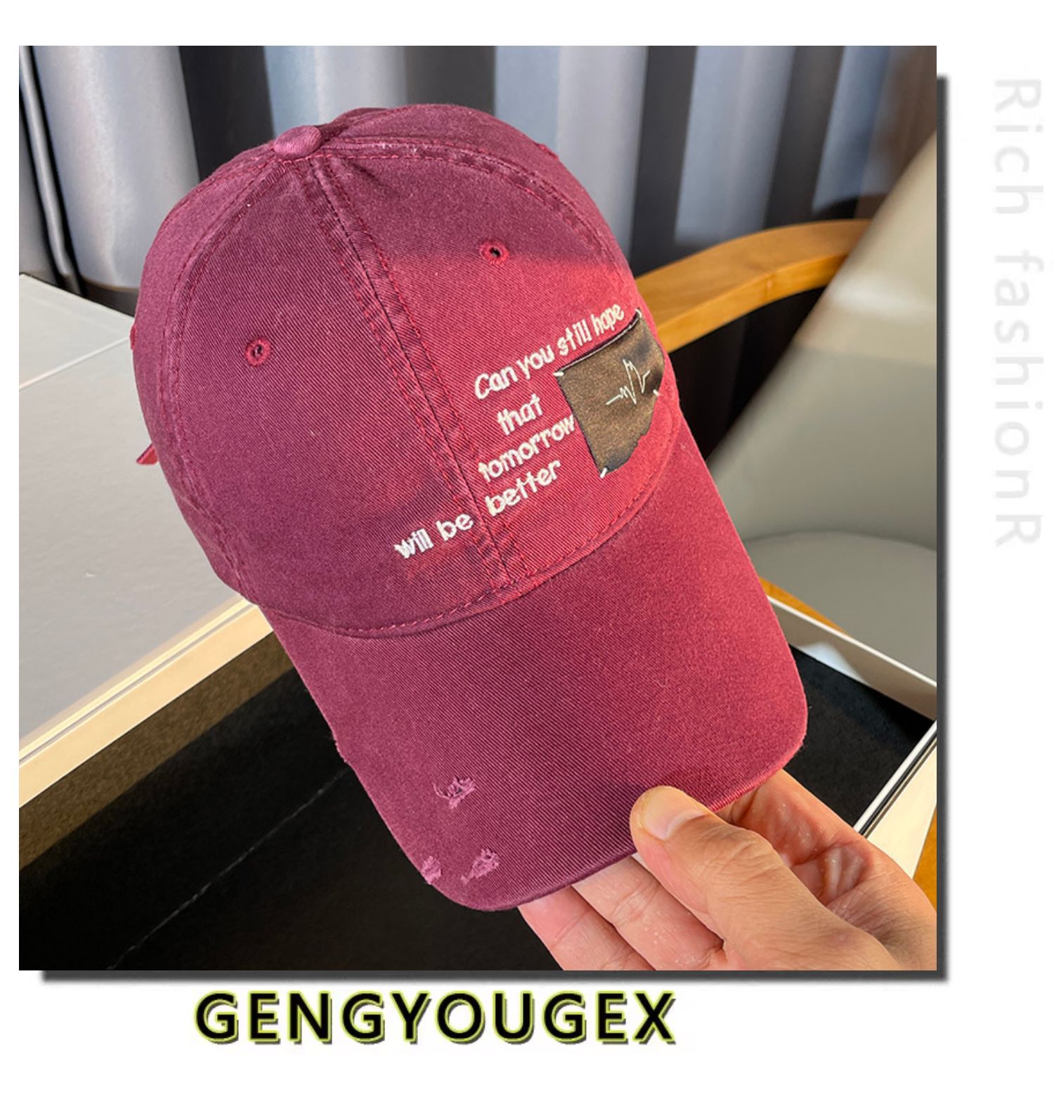 新款原宿风破洞软顶百搭棒球帽子女四季款情侣鸭舌帽男