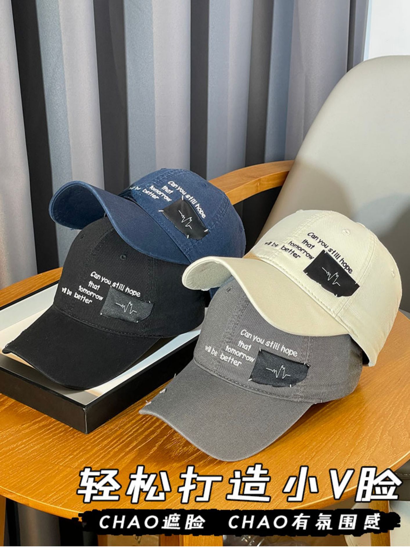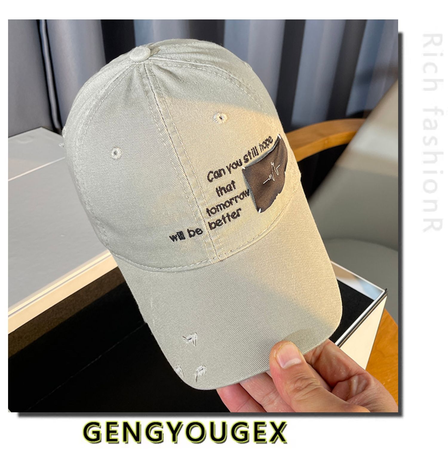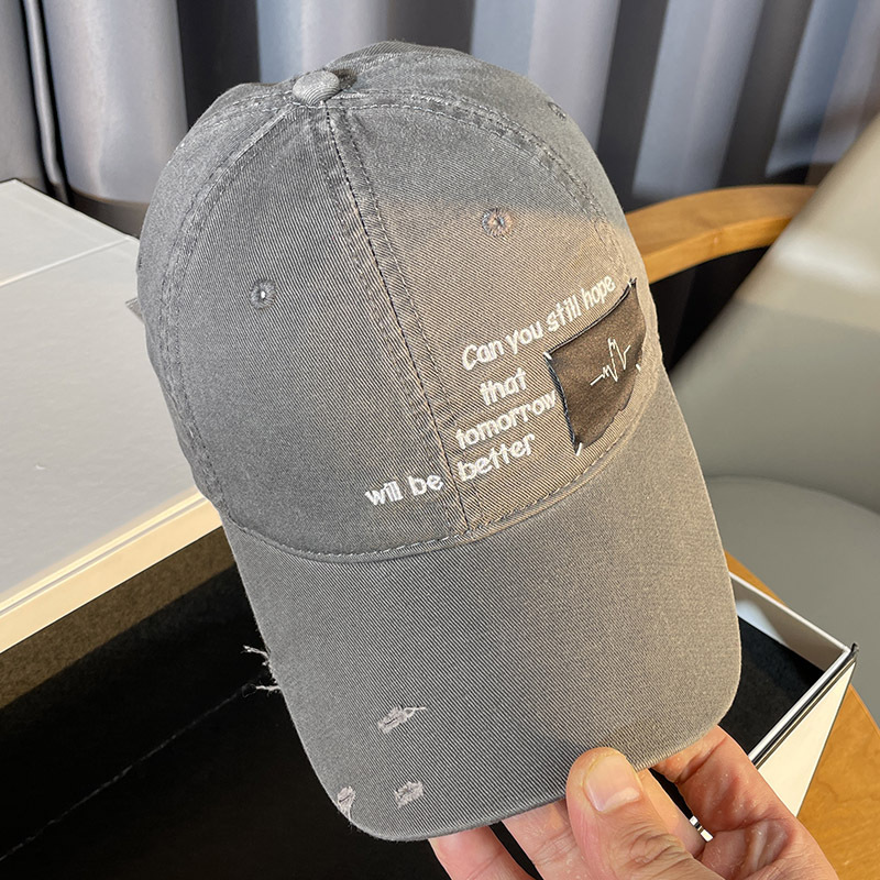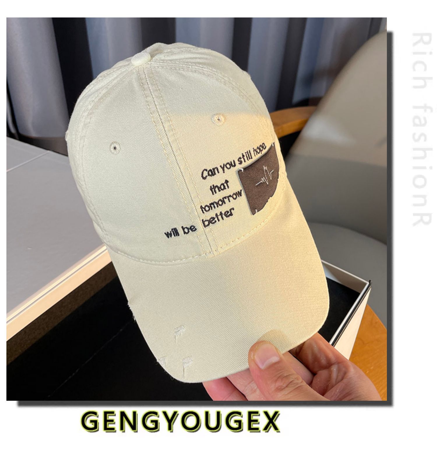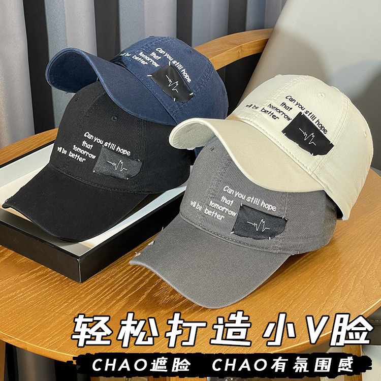 新款原宿风破洞软顶百搭棒球帽子女四季款情侣鸭舌帽男