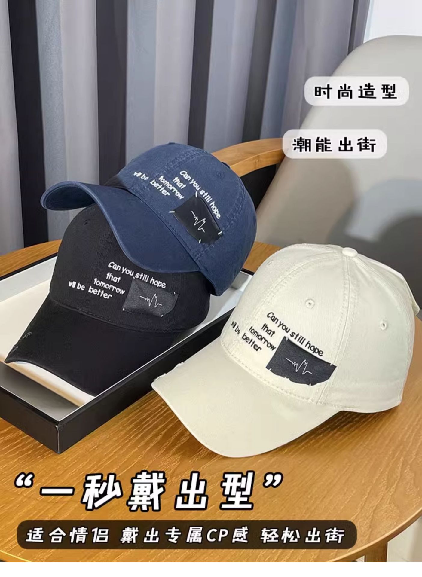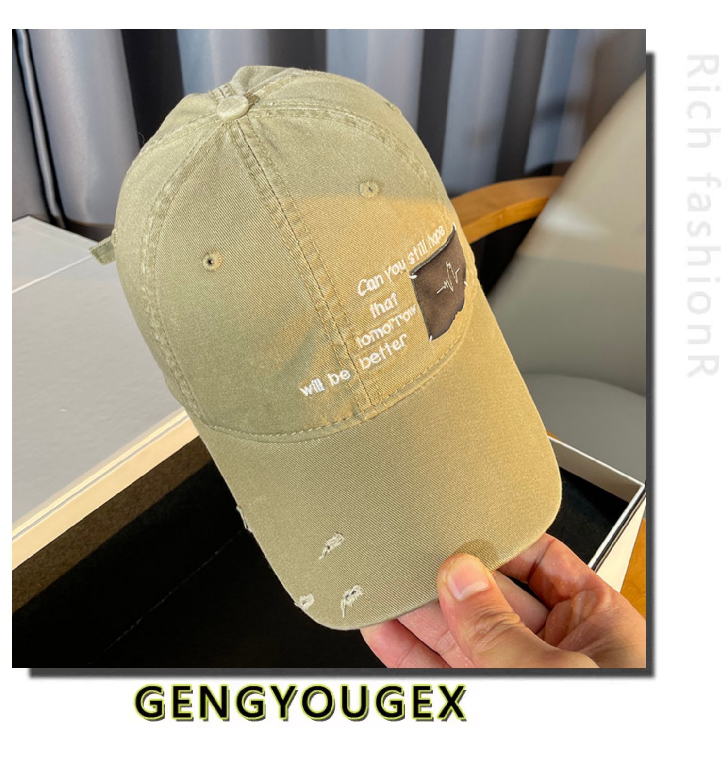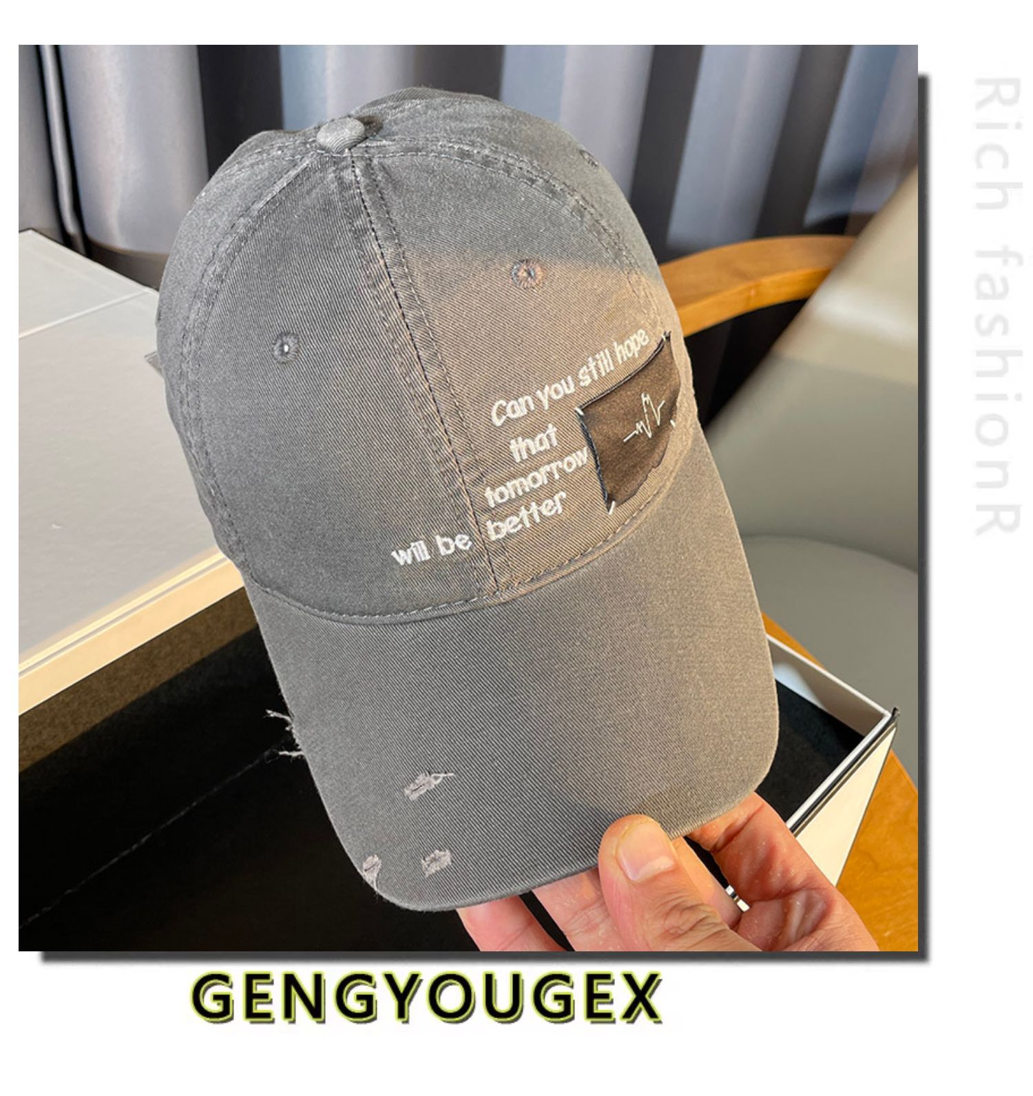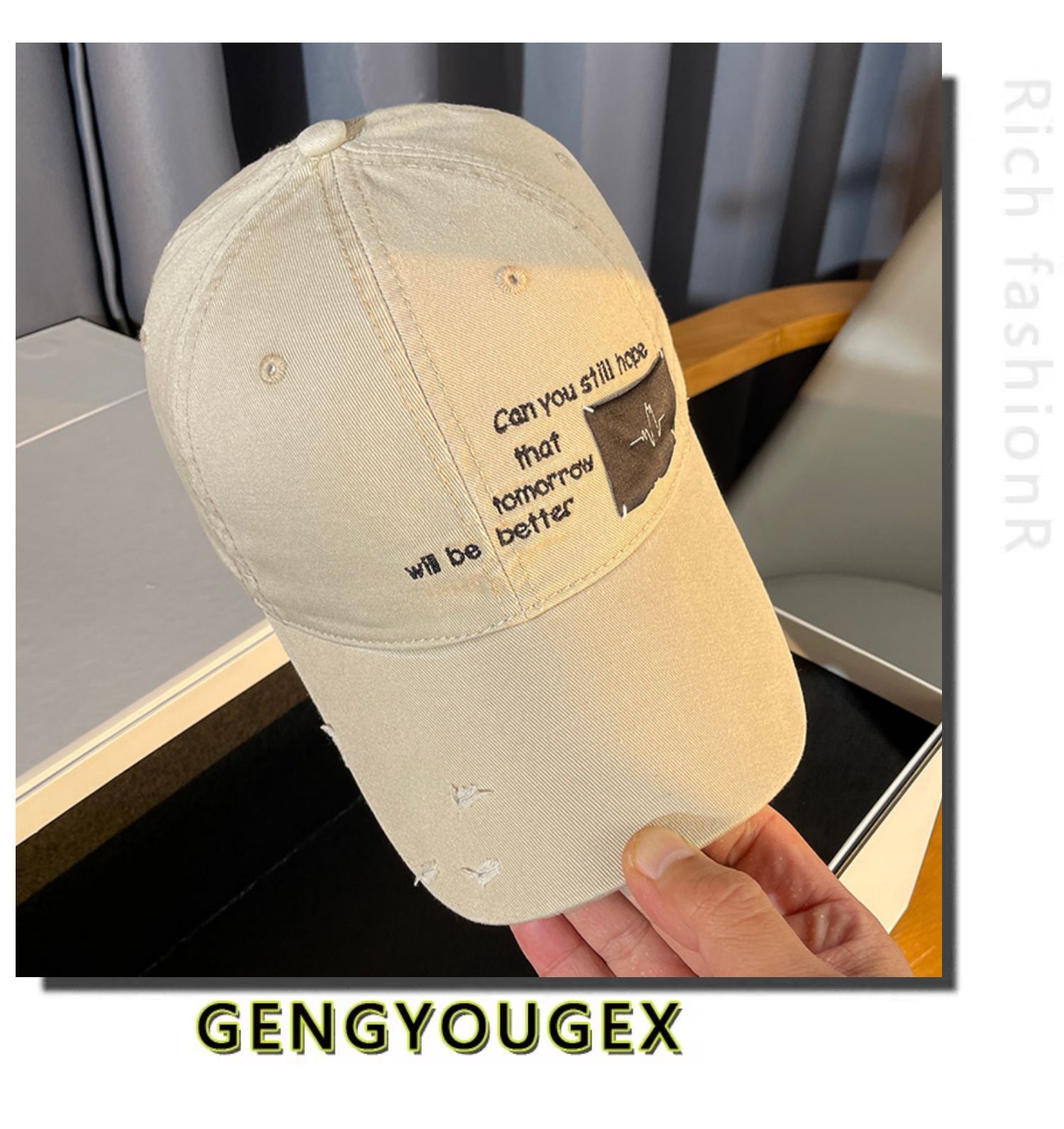 新款原宿风破洞软顶百搭棒球帽子女四季款情侣鸭舌帽男