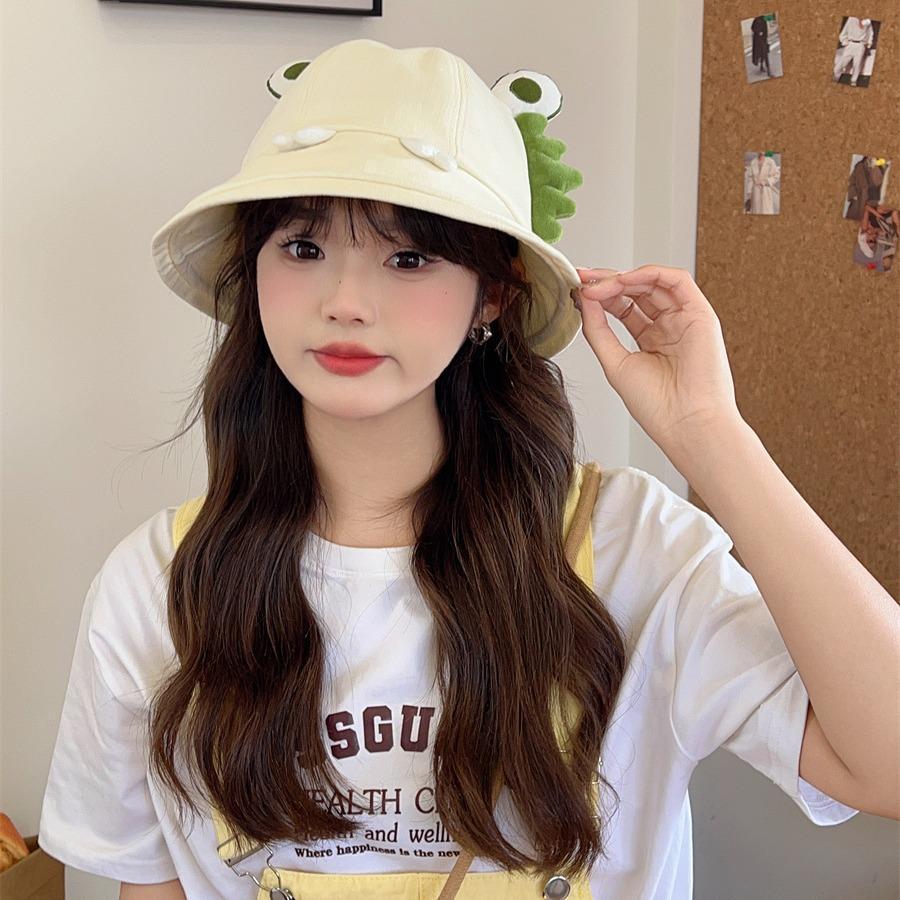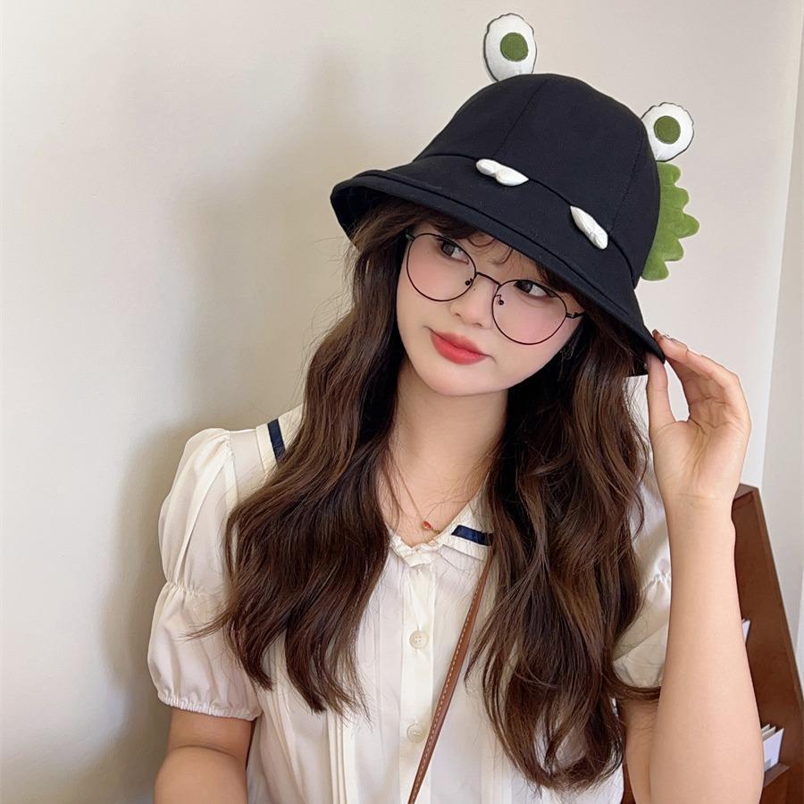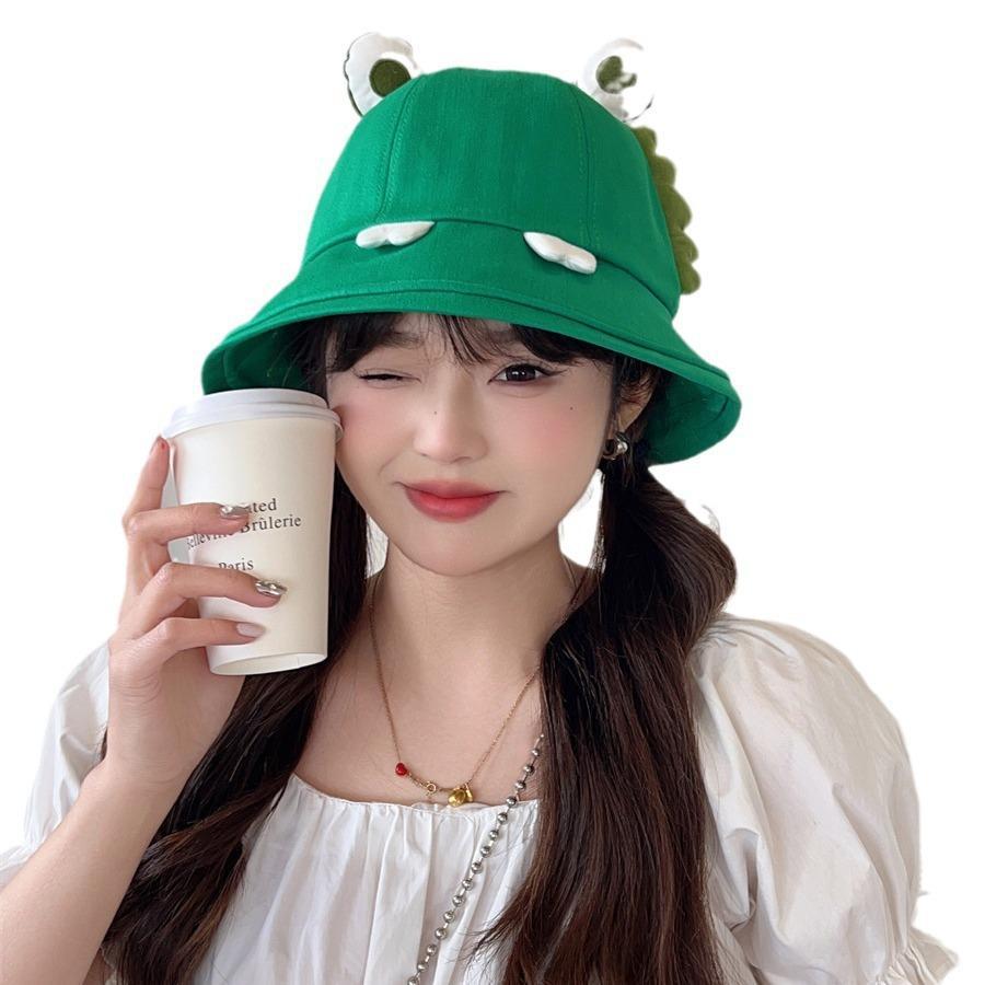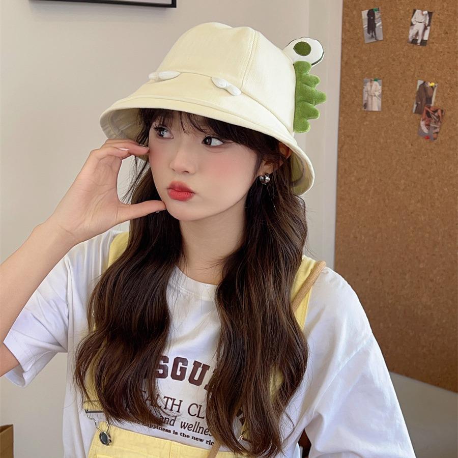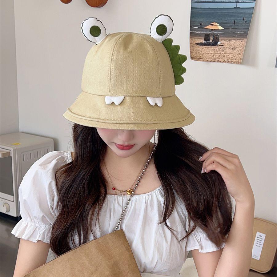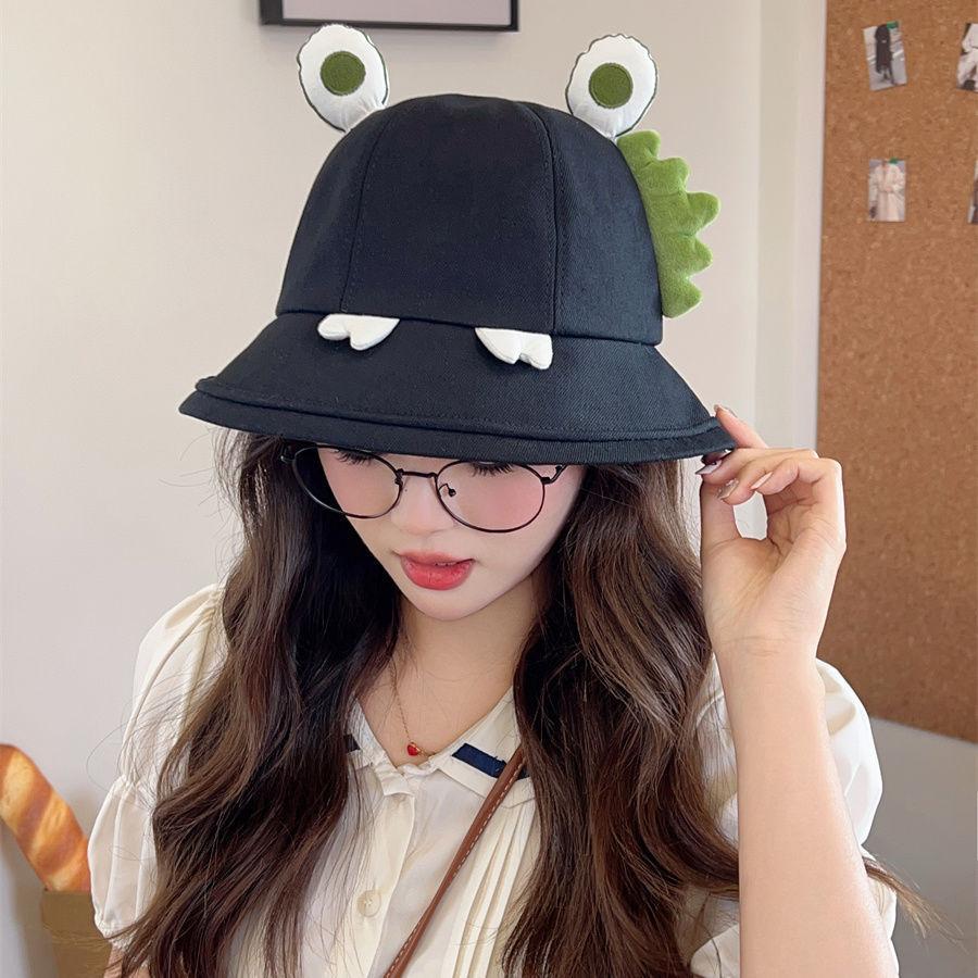 可爱恐龙帽子春夏季渔夫帽防晒遮阳帽学生日系韩版百卡通盆帽