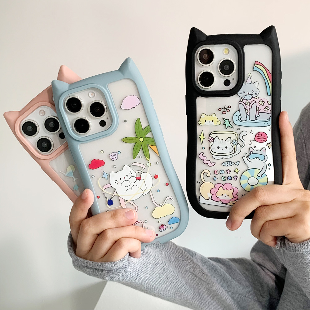 度假小猫15promax透明保护套13苹果手机壳14磨砂软边11气囊防摔12