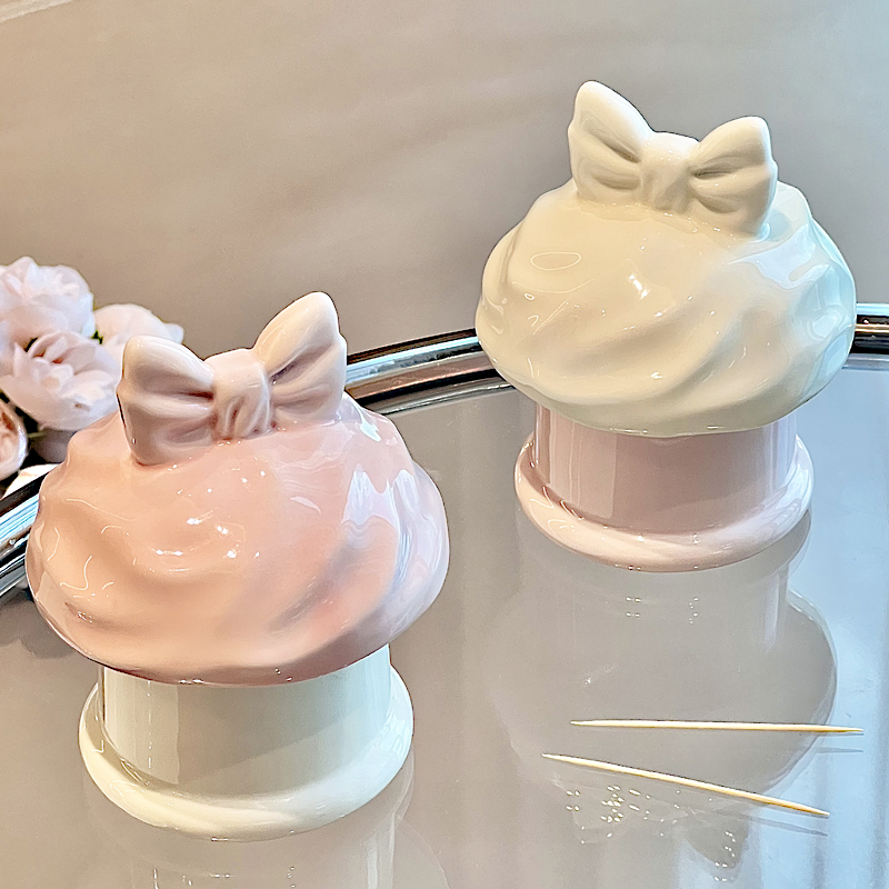 蝴蝶结牙签盒家用牙签筒新款棉签牙线收纳盒牙签罐创意高级感