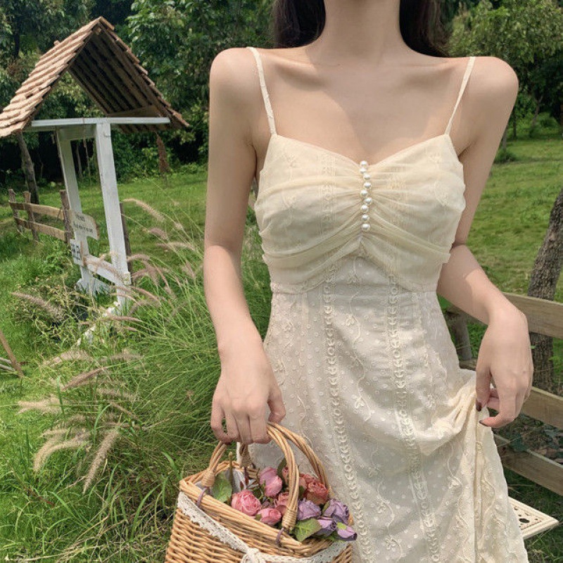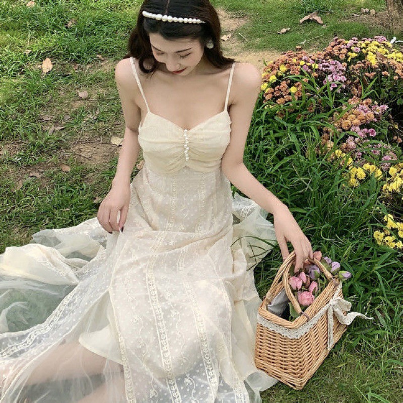甜欲风桔梗初恋裙茶歇法式吊带长裙设计感显瘦收腰超仙森系连衣裙