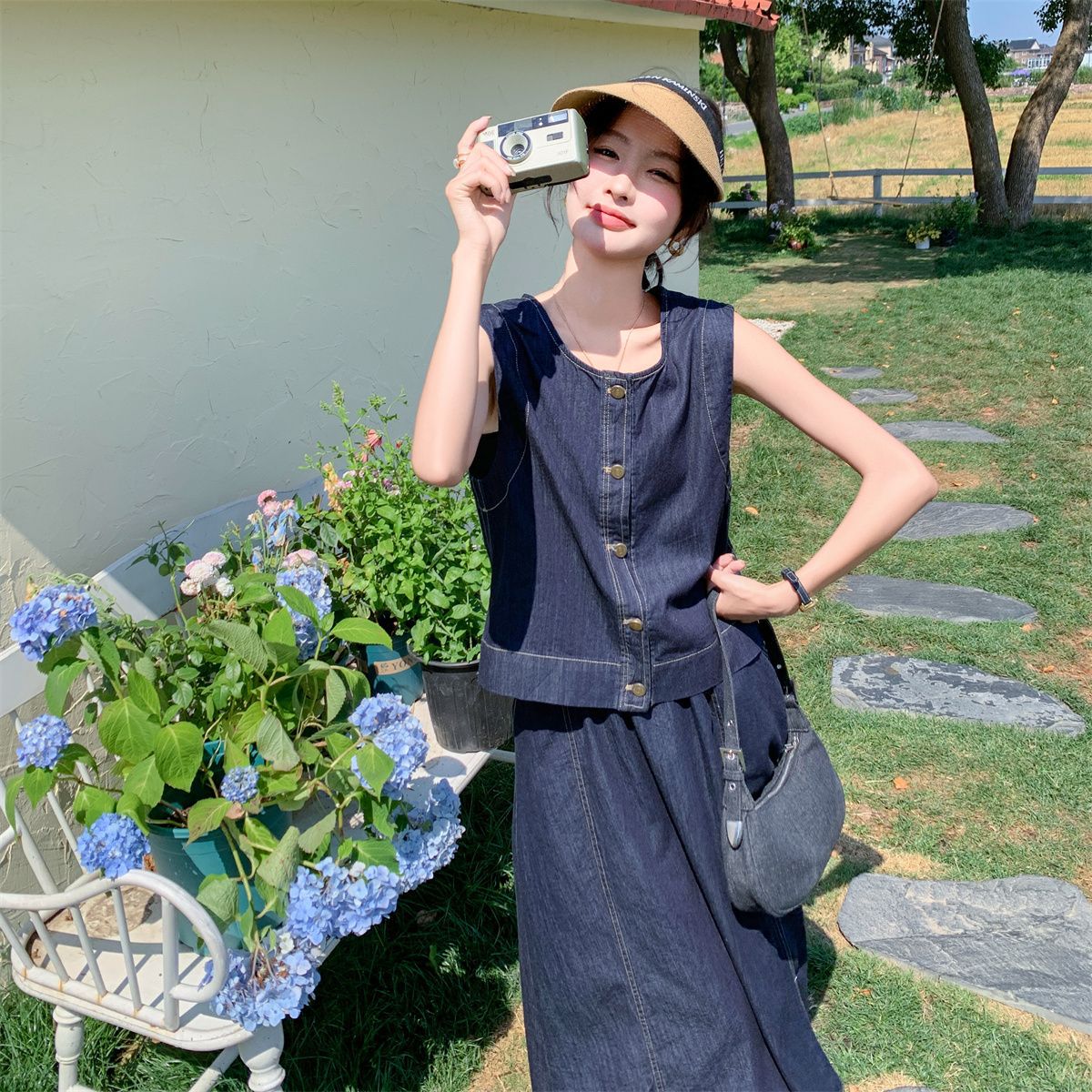 干练气质女装牛仔套装裙夏新款无袖马甲半身裙盐系轻熟两件套