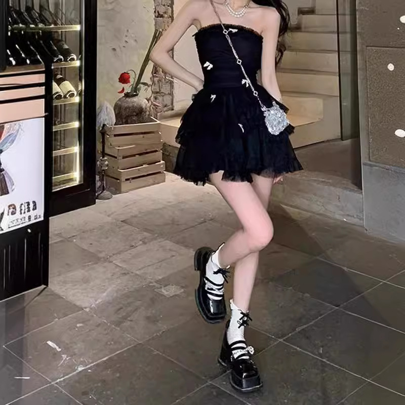 法式清纯蛋糕连衣裙夏季新款女装收腰辣妹抹胸时尚性感蓬蓬裙