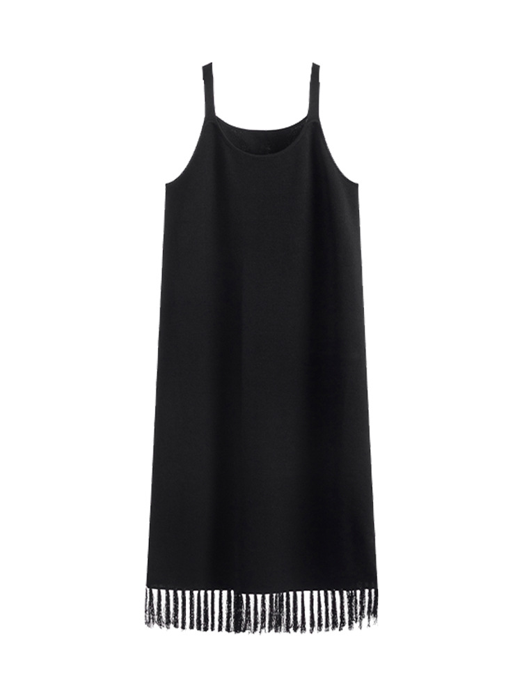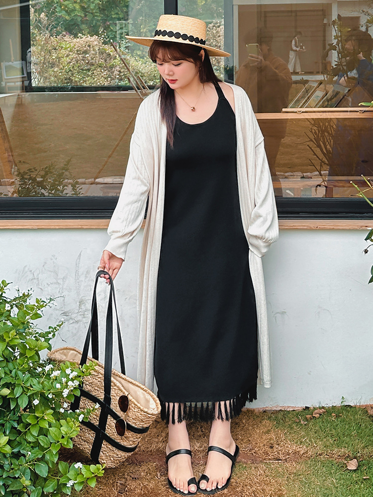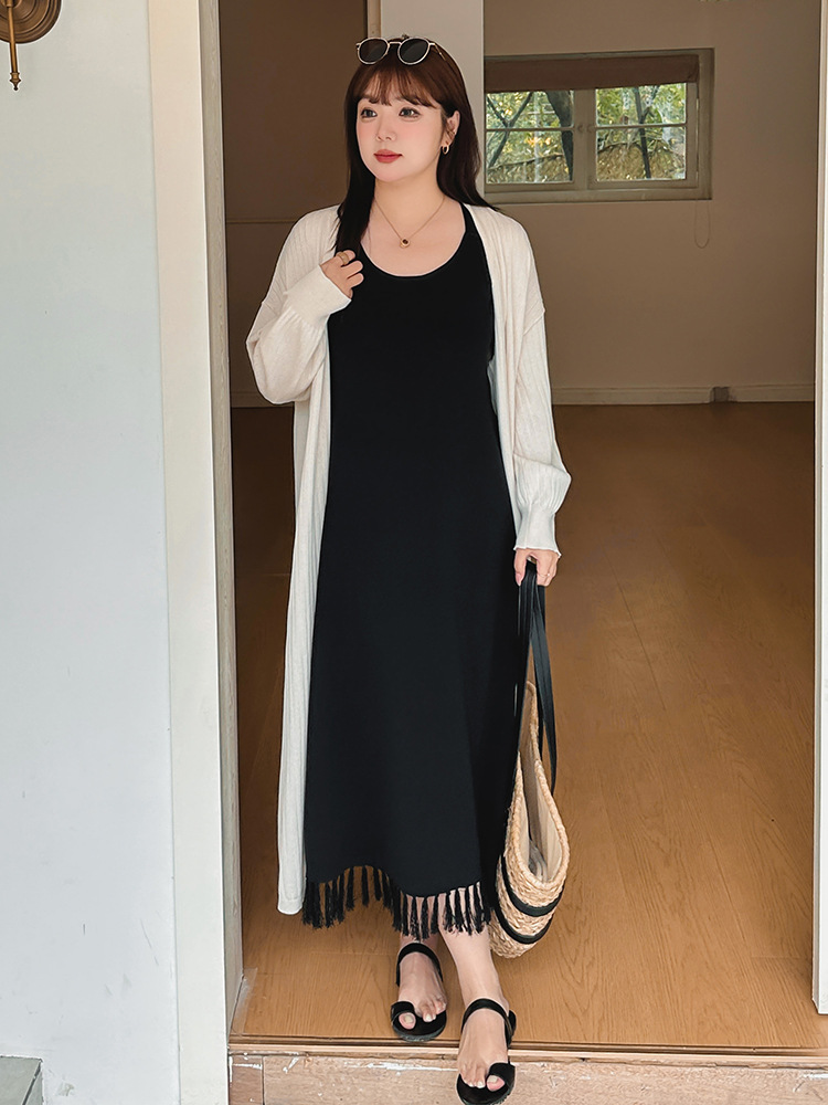 大码女装内搭背心裙女流苏裙春胖mm显瘦遮肉针织连衣裙