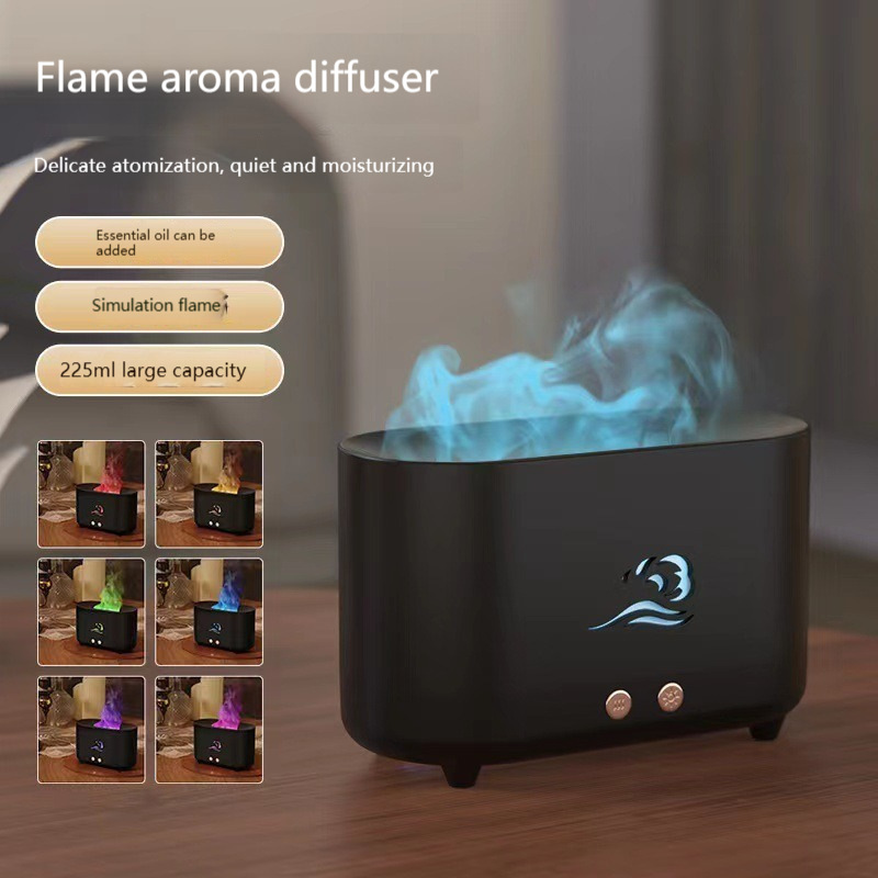七色火焰香薰机加湿器大雾香薰机静音仿真火卧室客厅氛围灯