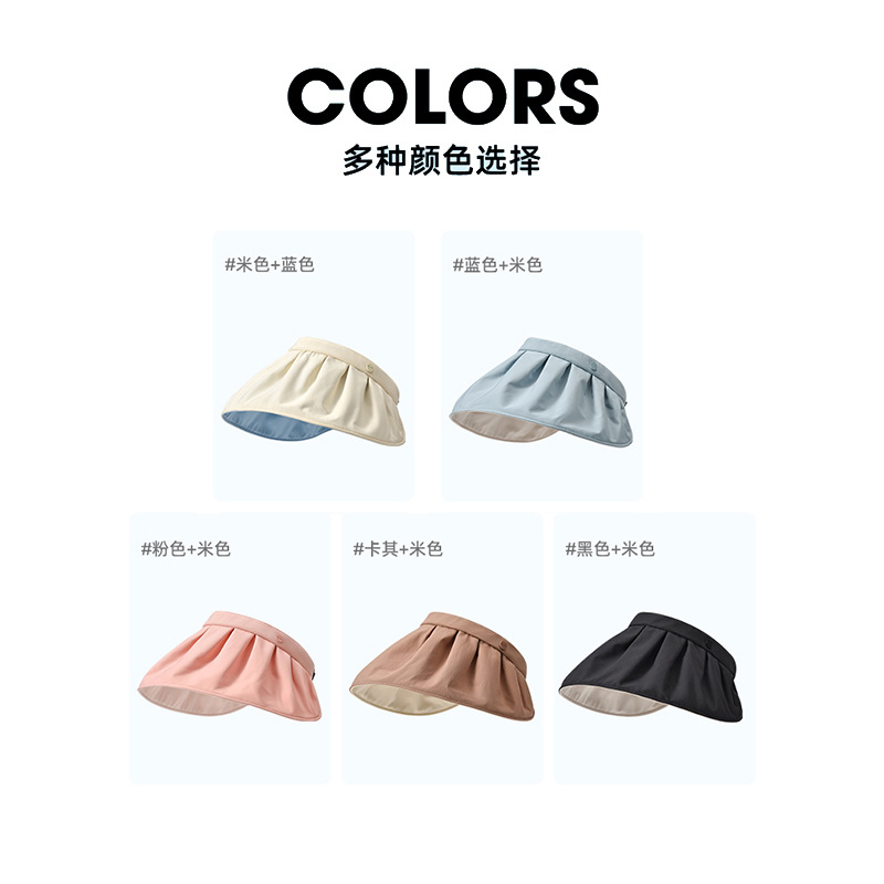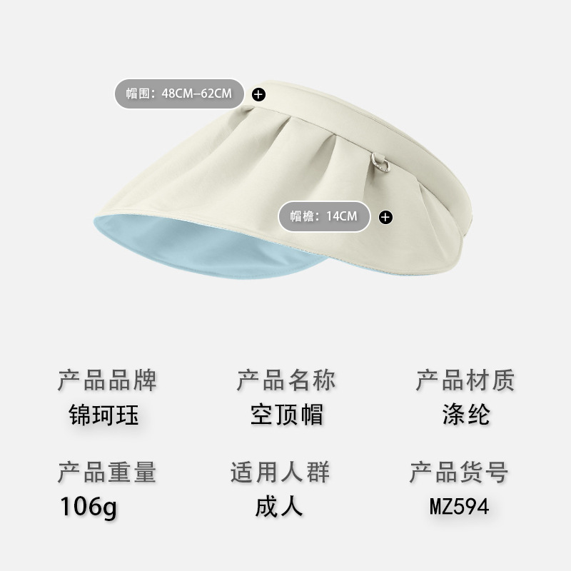 空顶防晒帽女款夏季黑胶防紫外线贝壳遮阳帽太阳帽大帽檐