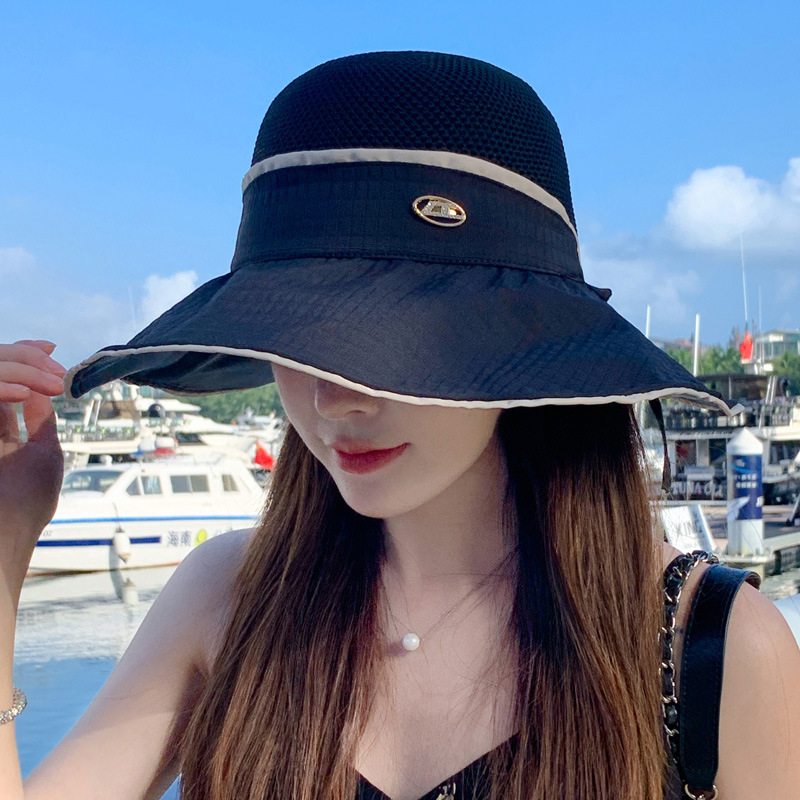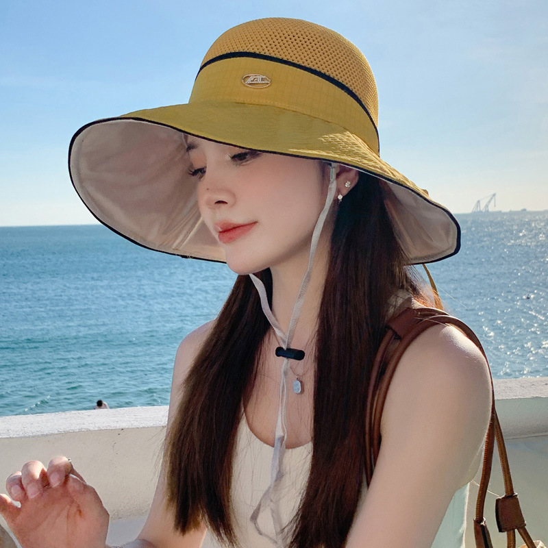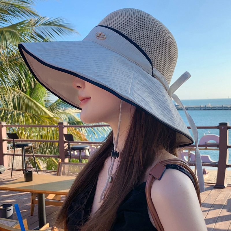 新款帽子女夏季户外海边沙滩防晒遮阳帽防紫外线大檐太阳帽潮