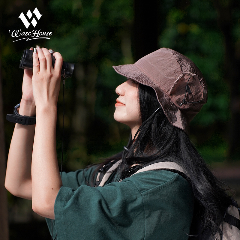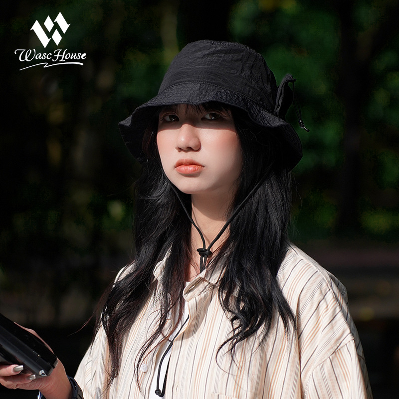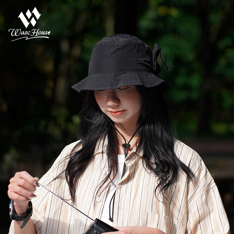 防水防晒渔夫帽可收纳盆帽薄速干户外防晒帽子女透气抽绳渔夫帽男