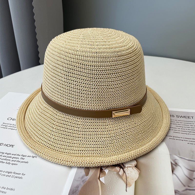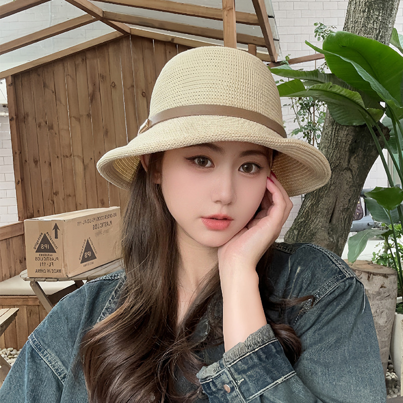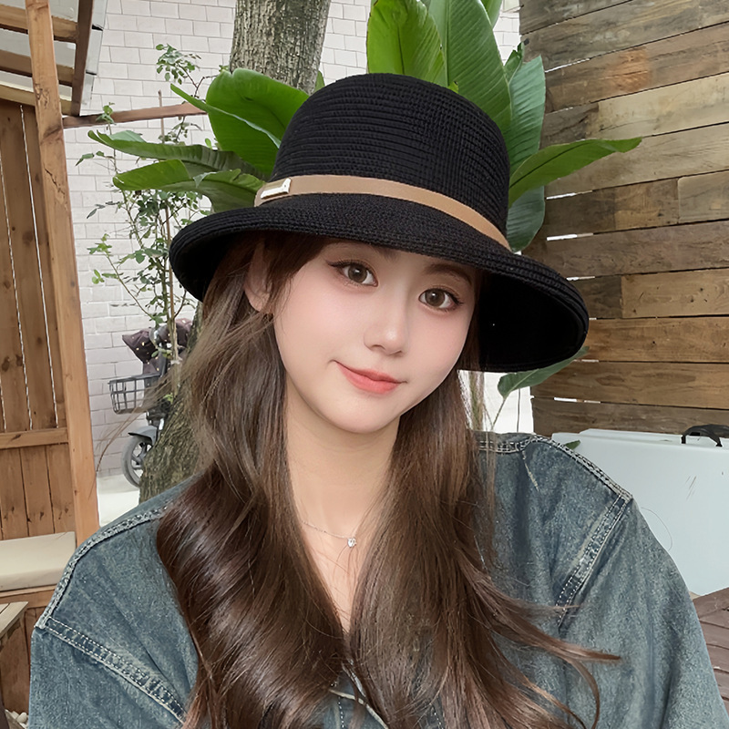 亚麻帽子女夏季防晒薄款名媛风圆顶渔夫帽时尚百搭遮阳沙滩小礼帽