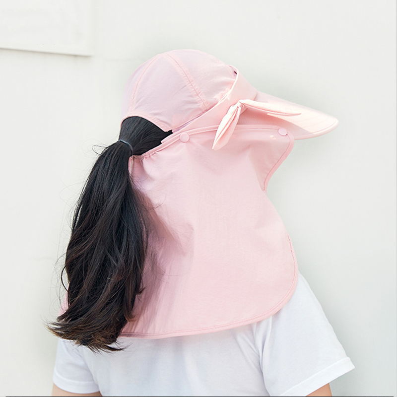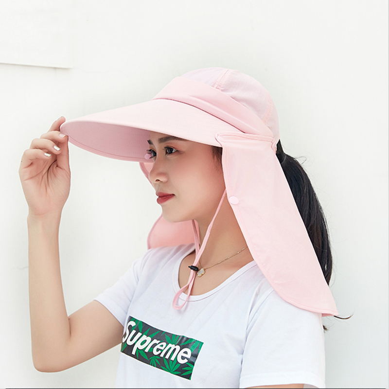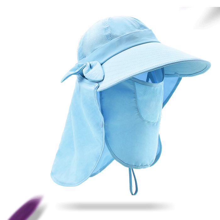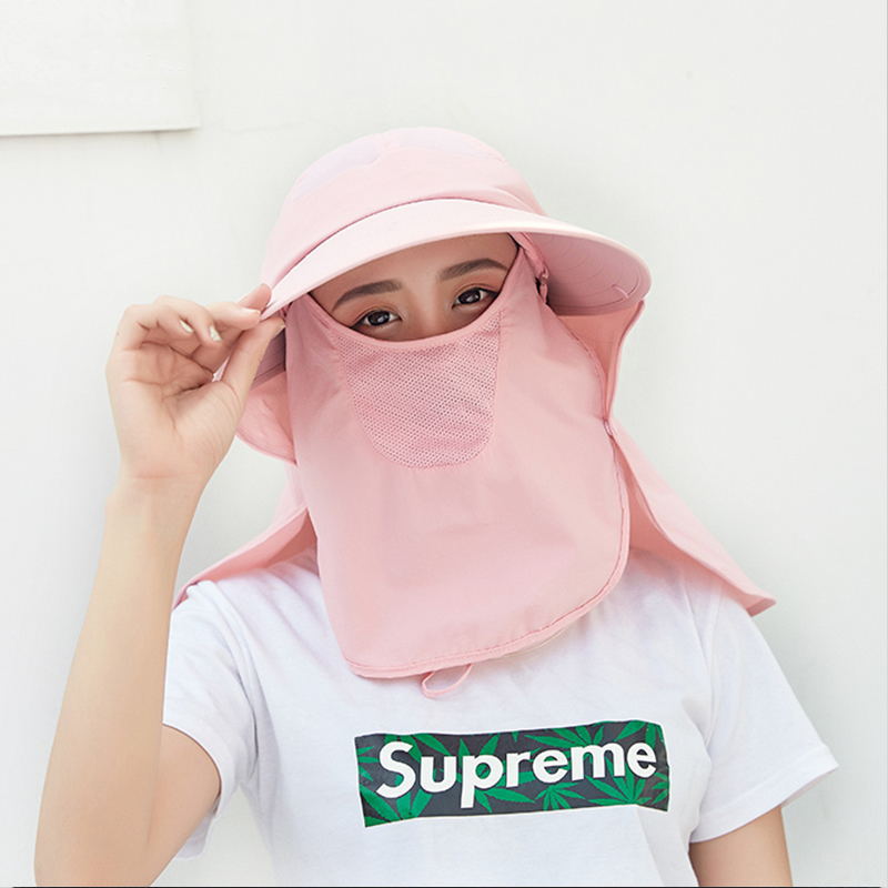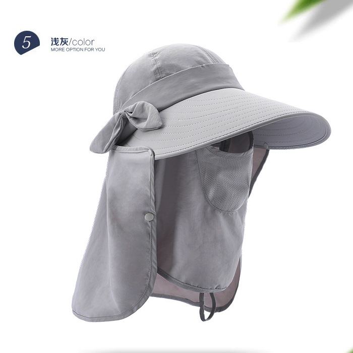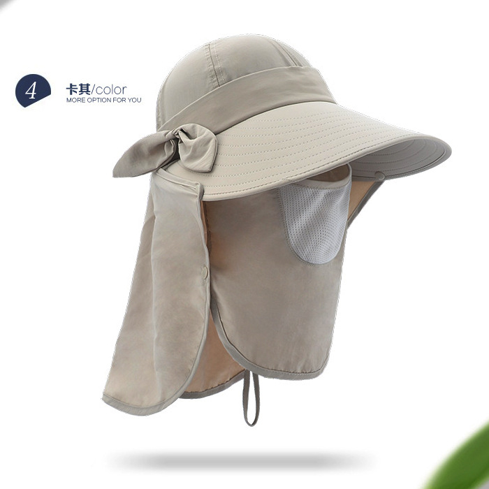 夏季女士太阳帽遮阳帽子可拆卸采茶大檐防晒帽防紫外线面罩渔夫帽