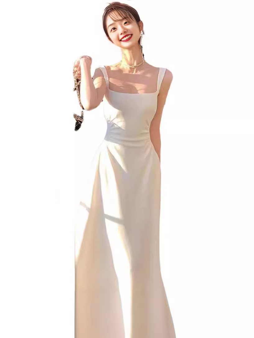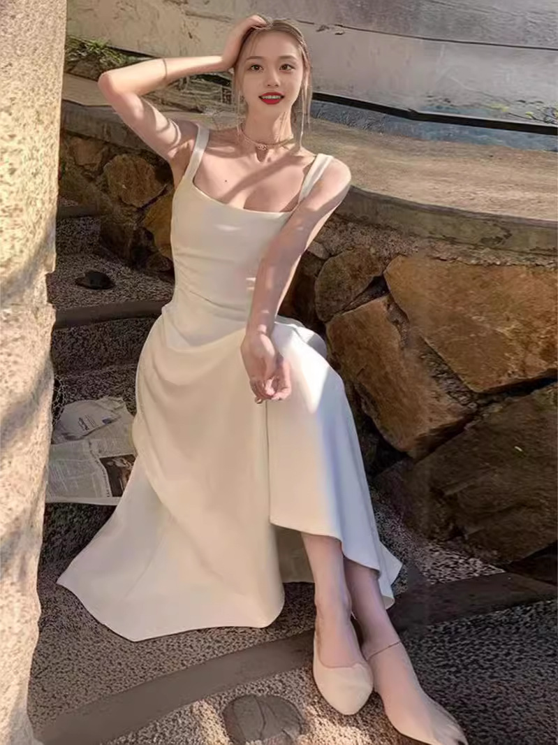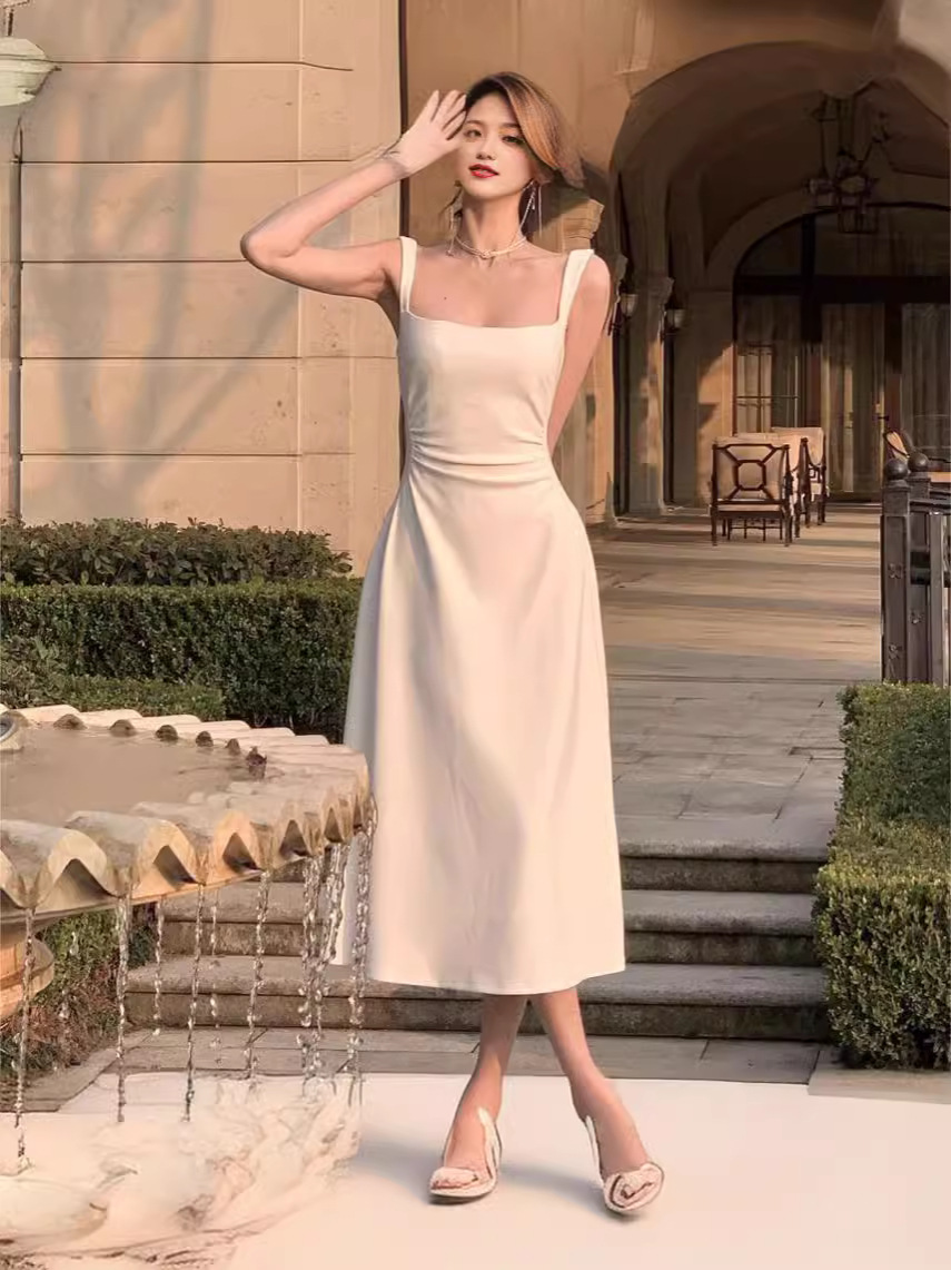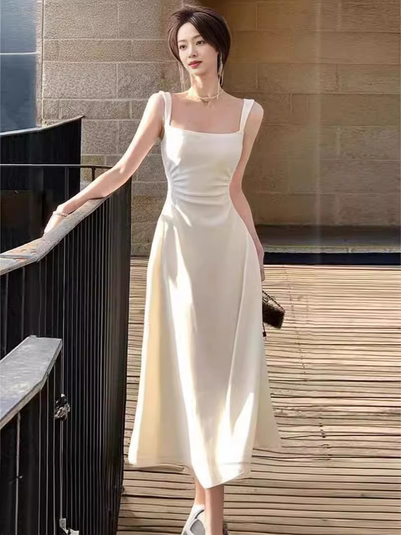 白色吊带连衣裙夏季女新款a字法式气质收腰小众设计长裙子