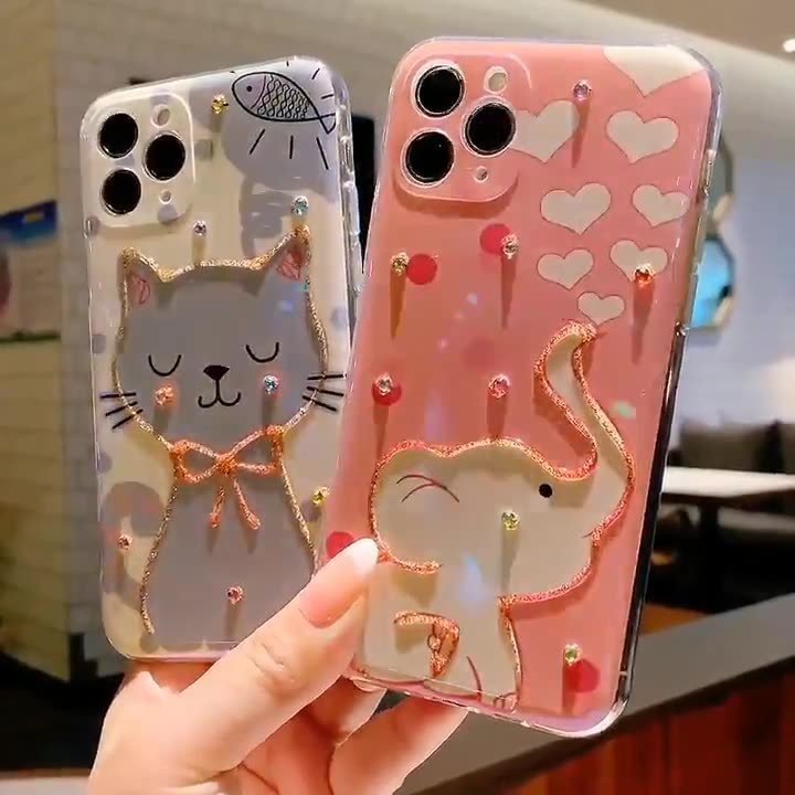 可爱猫咪闪粉适用于iPhone15promax镶钻14pro防摔13潮流12手机壳