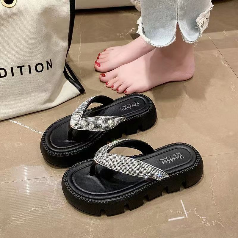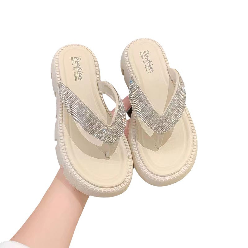 夏款新款亮闪水钻人字拖女高级感夹脚松糕女鞋潮流懒人凉拖鞋