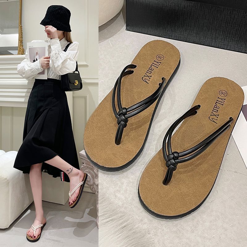 新款沙滩鞋拖鞋女夏海边防滑外穿夹脚凉拖中跟度假时尚人字拖