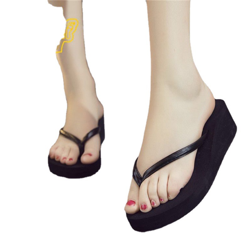 厚底人字拖女夏坡跟时尚外穿高跟凉拖女学生韩版防滑防臭沙滩拖鞋