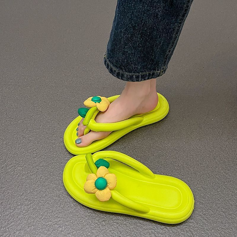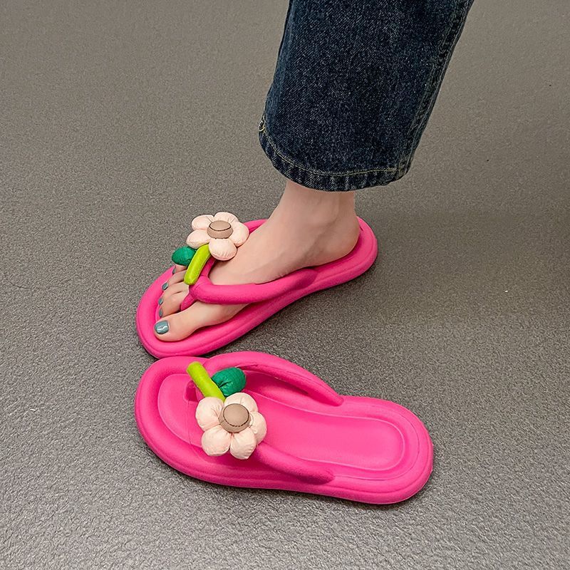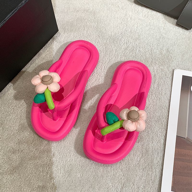 踩屎感软底凉拖鞋女外穿年夏季新款可爱花朵人字拖防水沙滩鞋