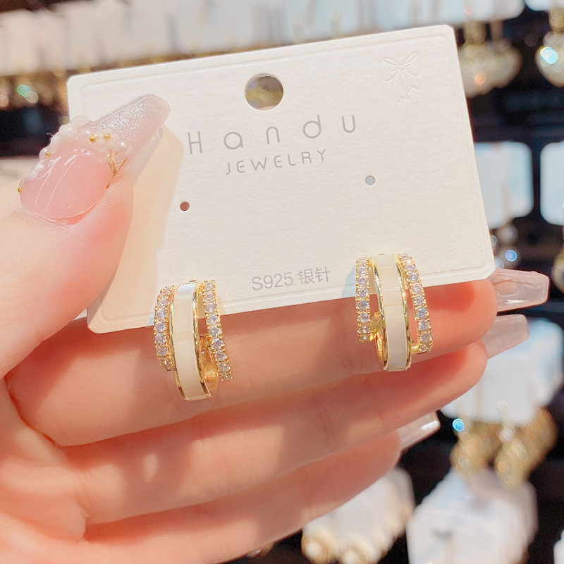 韩国气质简约微镶贝壳贝壳耳钉女s925银针网红个性设计感耳环耳饰