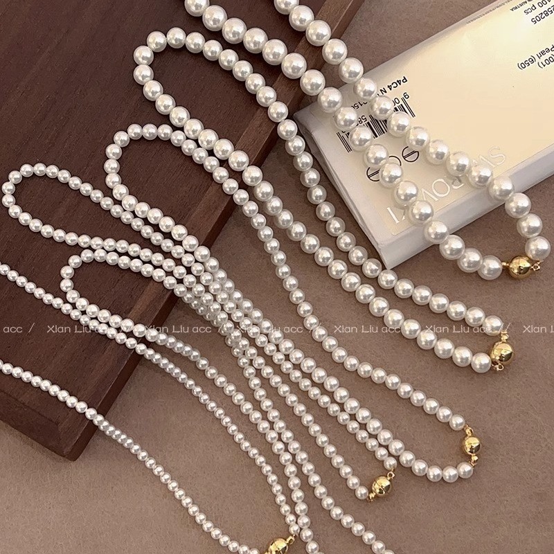 轻奢强光施家珍珠项链新款爆款磁吸扣锁骨链女秋冬毛衣链配饰