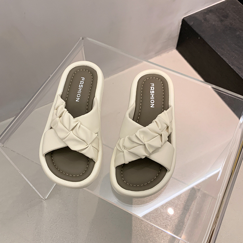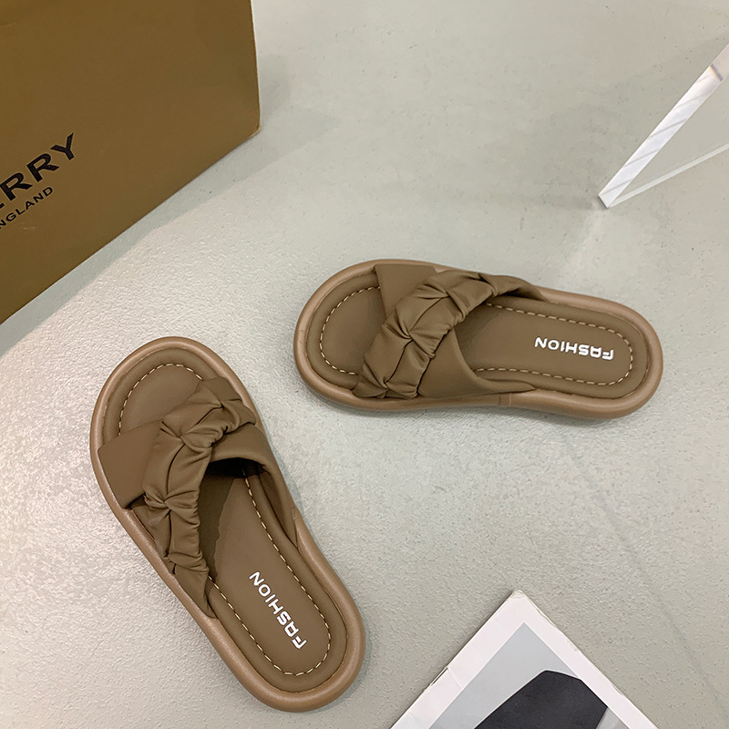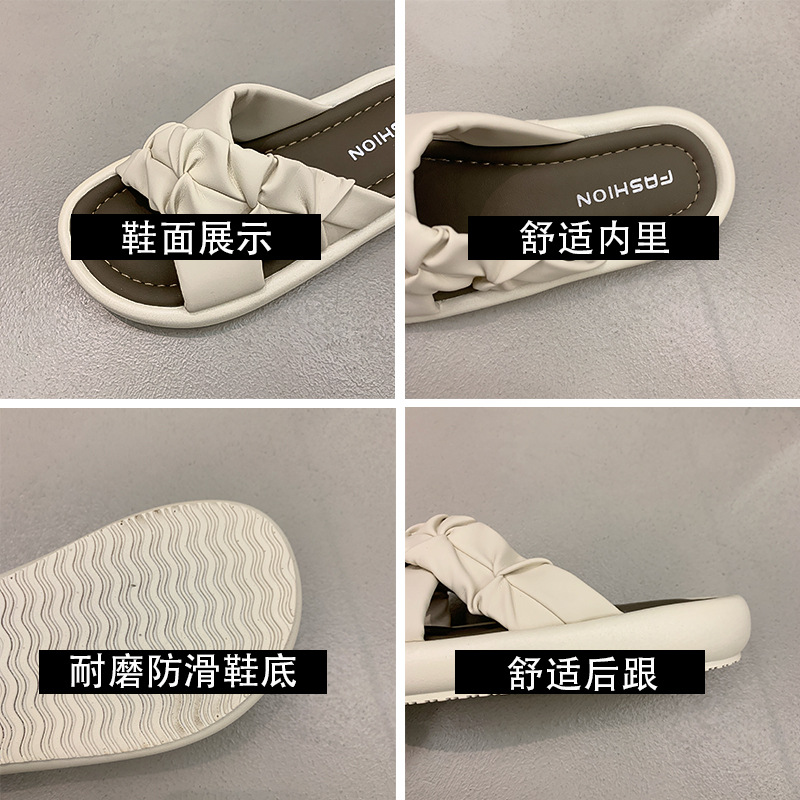 仙女风拖鞋女春夏季新款厂家直供褶皱交叉一字带休闲防滑沙滩凉拖